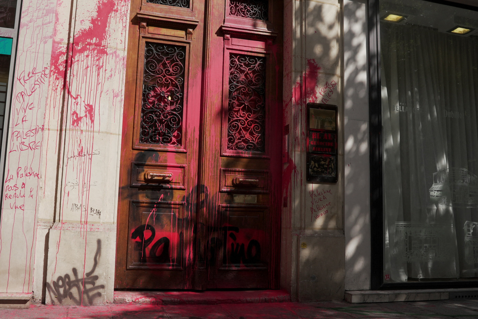 Η είσοδος των κεντρικών γραφείων του ισραηλινού αερομεταφορέα El Al στο Παρίσι καλύφθηκε με κόκκινη μπογιά και με εχθρικά συνθήματα, που γράφτηκαν όταν το κτίριο ήταν άδειο κατά τη διάρκεια της νύχτας της Τετάρτης προς Πέμπτη.