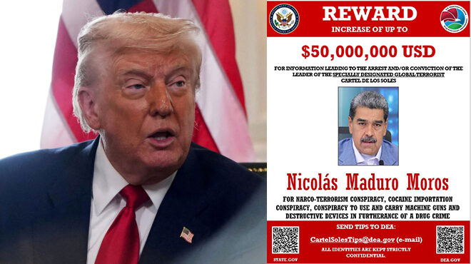 Η Ουάσιγκτον, η οποία δεν αναγνωρίζει τις δύο τελευταίες εκλογικές νίκες του Νικολάς Μαδούρο, κατηγορεί τον πρόεδρο της Βενεζουέλας ότι ηγείται δικτύου διακίνησης κοκαΐνης. Σε αυτό το πλαίσιο, τον έχει επικηρύξει ήδη από τον περασμένο Ιανουάριο, προσφέροντας αμοιβή σε όποιον δώσει πληροφορίες που θα οδηγήσουν στη σύλληψή του, μια αμοιβή που ήταν 25 εκατ. δολ. και την οποία τώρα διπλασιάζει, στα 50 εκατ. δολ.