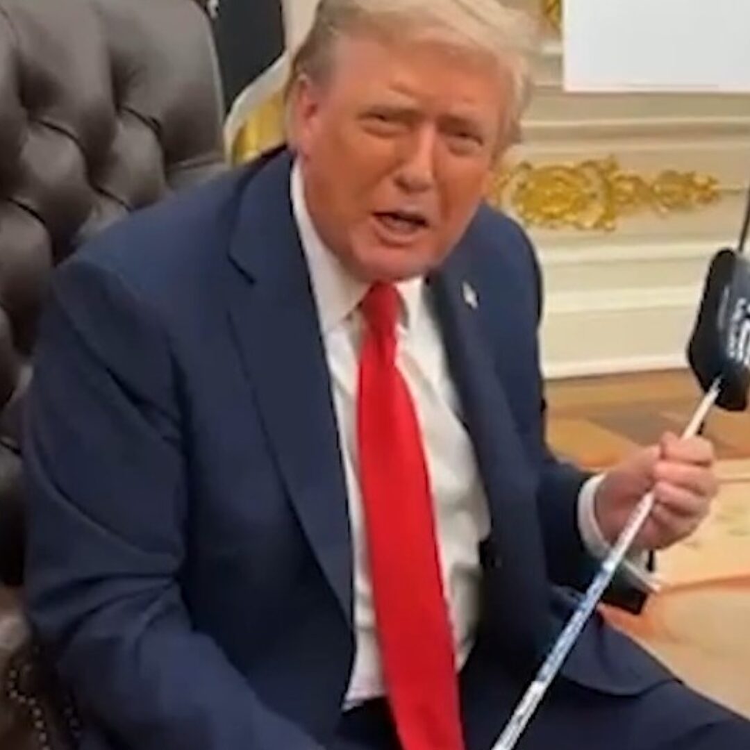 «Είναι φανταστικό. Κατασκευάστηκε με πολλή αγάπη και εσείς μου το προσφέρατε με πολλή αγάπη», λέει ο Αμερικανός πρόεδρος, μέσα από το Οβάλ Γραφείο, κρατώντας το μπαστούνι. «Θα το χρησιμοποιώ κάθε φορά που θα κάνω ένα ελαφρύ χτύπημα (putt). Θα σας σκέφτομαι», διαβεβαίωσε.