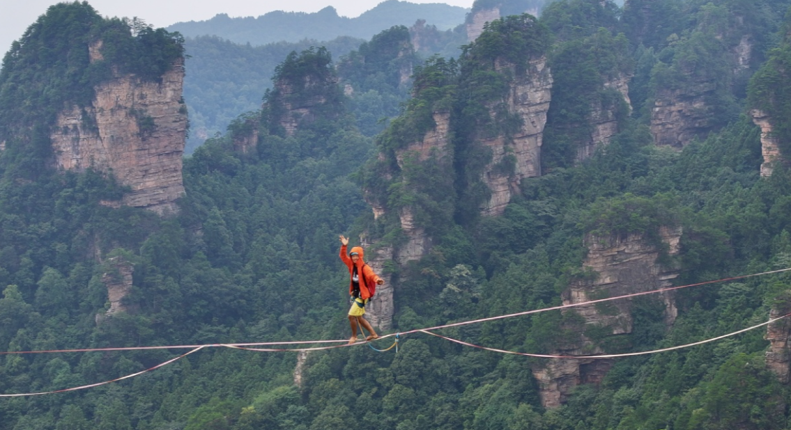 Πάνω από 20 κορυφαίοι αθλητές από ολόκληρο τον κόσμο δοκίμασαν τις ικανότητές τους στη σχοινοβασία -και τα όριά τους στην αδρεναλίνη- σε ένα φαράγγι ιλιγγιώδους ομορφιάς και βάθους, στη Zhangjiajie της Κίνας.