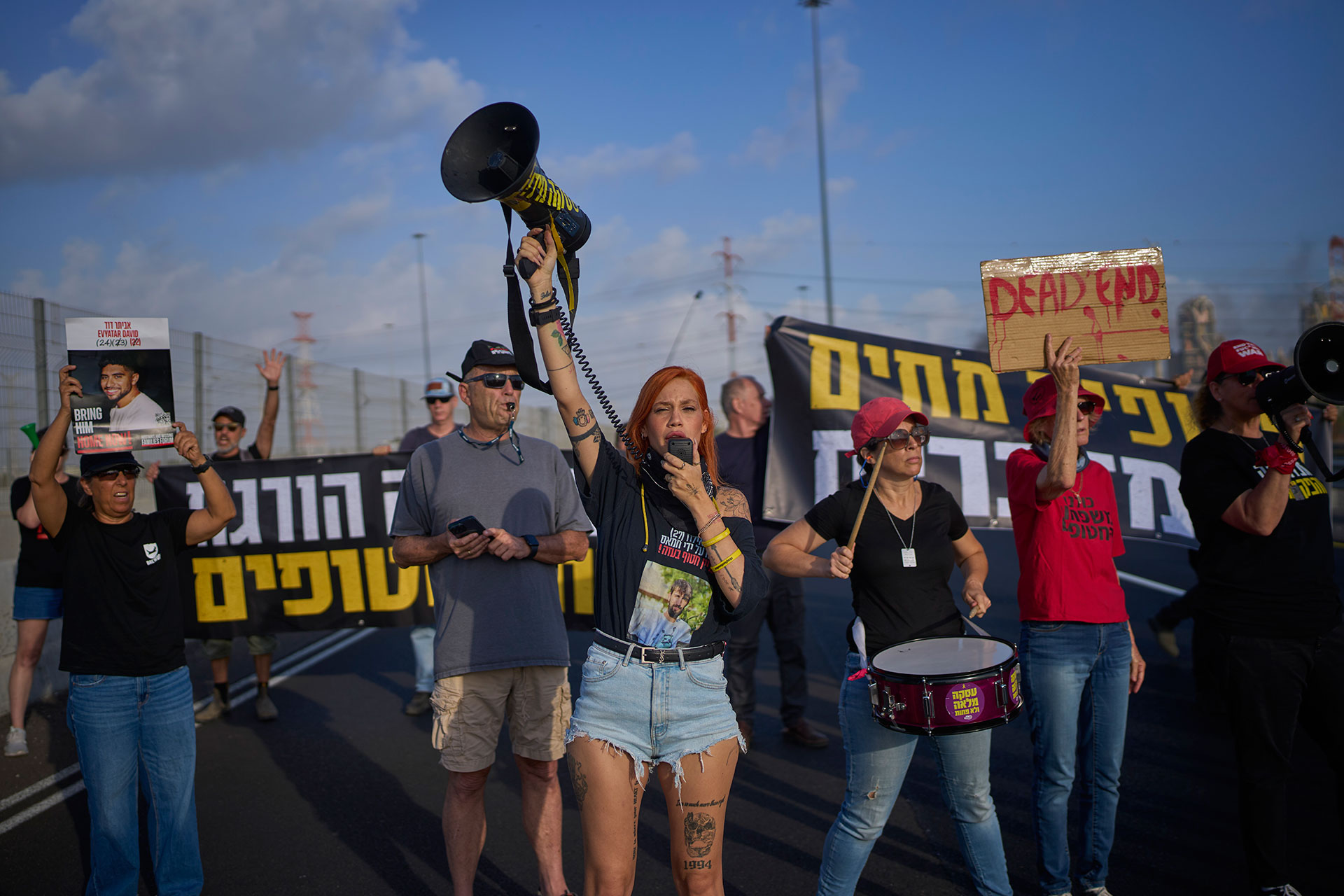 Στη βόρεια είσοδο της παραλιακής μητρόπολης, φωτογράφος του Γαλλικού Πρακτορείου είδε περίπου 400 ανθρώπους να σταματούν τα αυτοκίνητα, ανεμίζοντας ισραηλινές σημαίες και φωτογραφίες ομήρων.