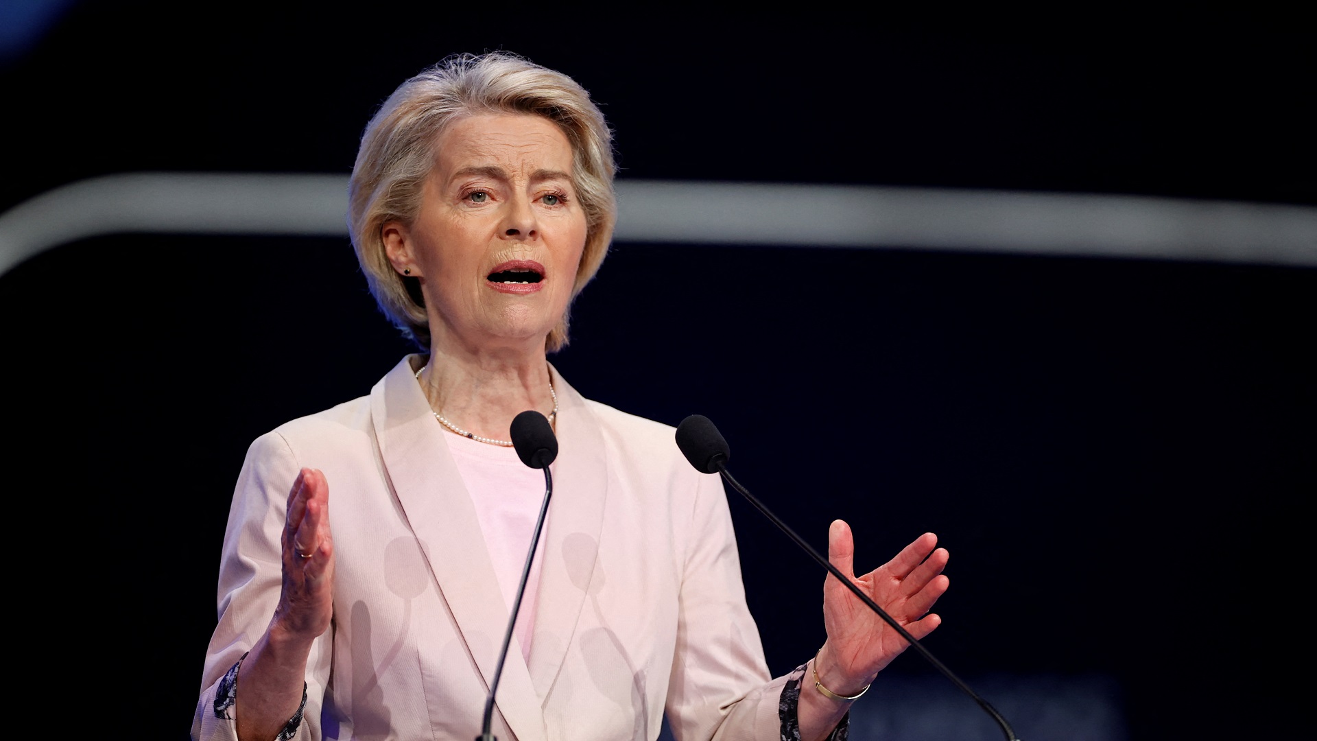 Η πρόεδρος της Ευρωπαϊκής Επιτροπής, Ούρσουλα φον ντερ Λάιεν, δήλωσε σήμερα, Παρασκευή ότι η Κομισιόν έχει λάβει αιτήματα χρηματοδότησης συνολικού κόστους 150 δισ. ευρώ, τα οποία διατίθενται στο πλαίσιο της πρωτοβουλίας επανεξοπλισμού «SAFE» της Ε.Ε.