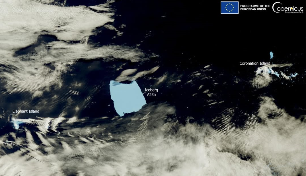 Στις αρχές του έτους, το παγόβουνο, που ονομάστηκε Α23a, ζύγιζε περίπου 1 τρισεκατομμύριο τόνους και είχε έκταση περίπου 4.000 τετραγωνικών χιλιομέτρων, ήταν δηλαδή κατά 50% μεγαλύτερο από την επιφάνεια του Λουξεμβούργου. Ωστόσο, καθώς κατευθύνεται βορειότερα, σε περιοχές όχι τόσο ψυχρές όσο ο Νότιος Ωκεανός, μεγάλα τμήματά του αποκολλήθηκαν.