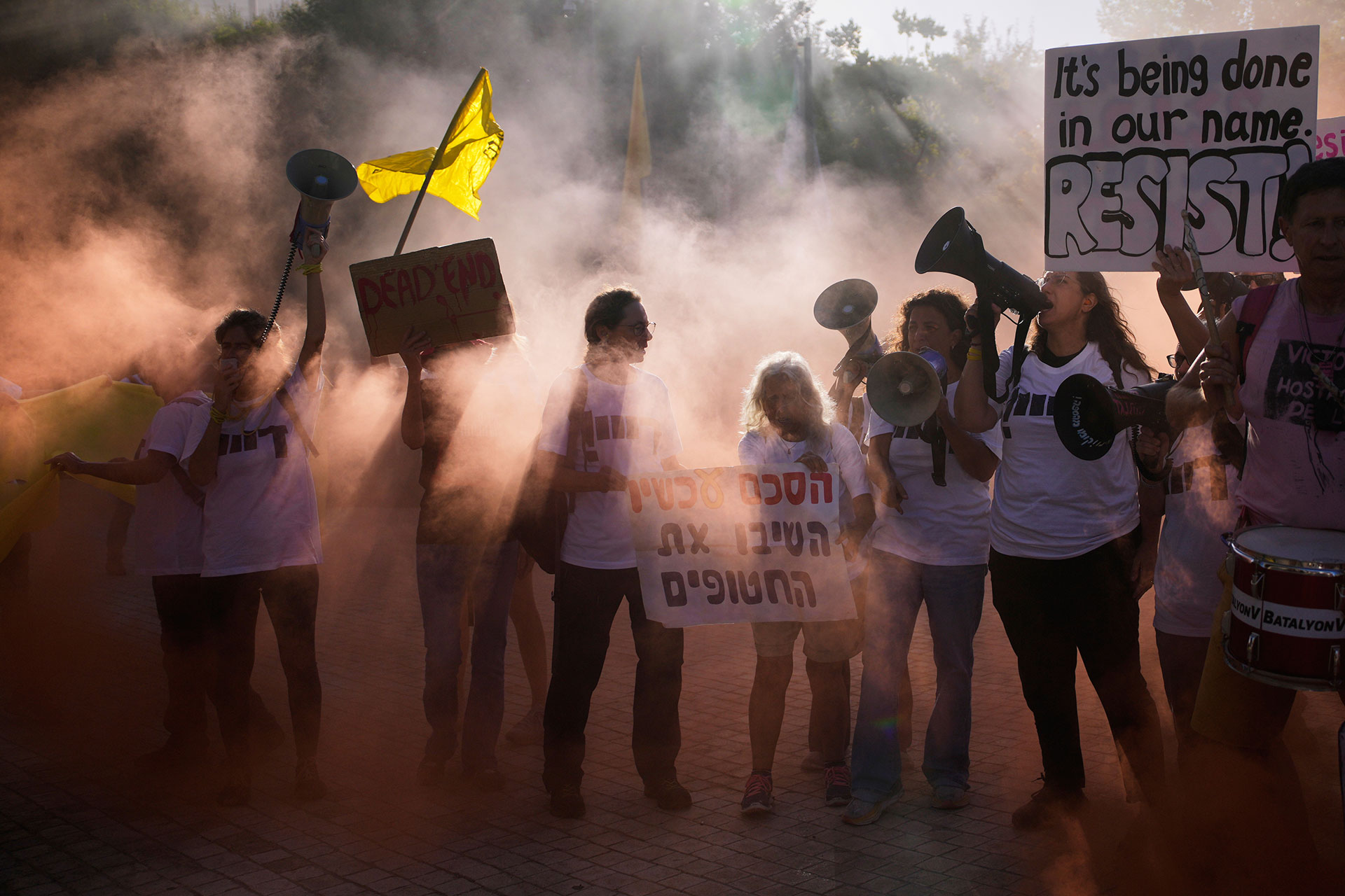 «Ενα κράτος δεν μπορεί να εγκαταλείπει τους πολίτες του. Η Εθνική Βιβλιοθήκη βρίσκεται δίπλα στην Κνεσέτ. Θέλουμε να μας δουν», τόνισε η διαδηλώτρια, αναφερόμενη στους 48 ομήρους που εξακολουθούν να κρατούνται στη Γάζα μετά την επίθεση της Χαμάς εναντίον του Ισραήλ στις 7 Οκτωβρίου 2023, από τους οποίους οι 20 πιστεύεται ότι είναι ακόμη ζωντανοί.