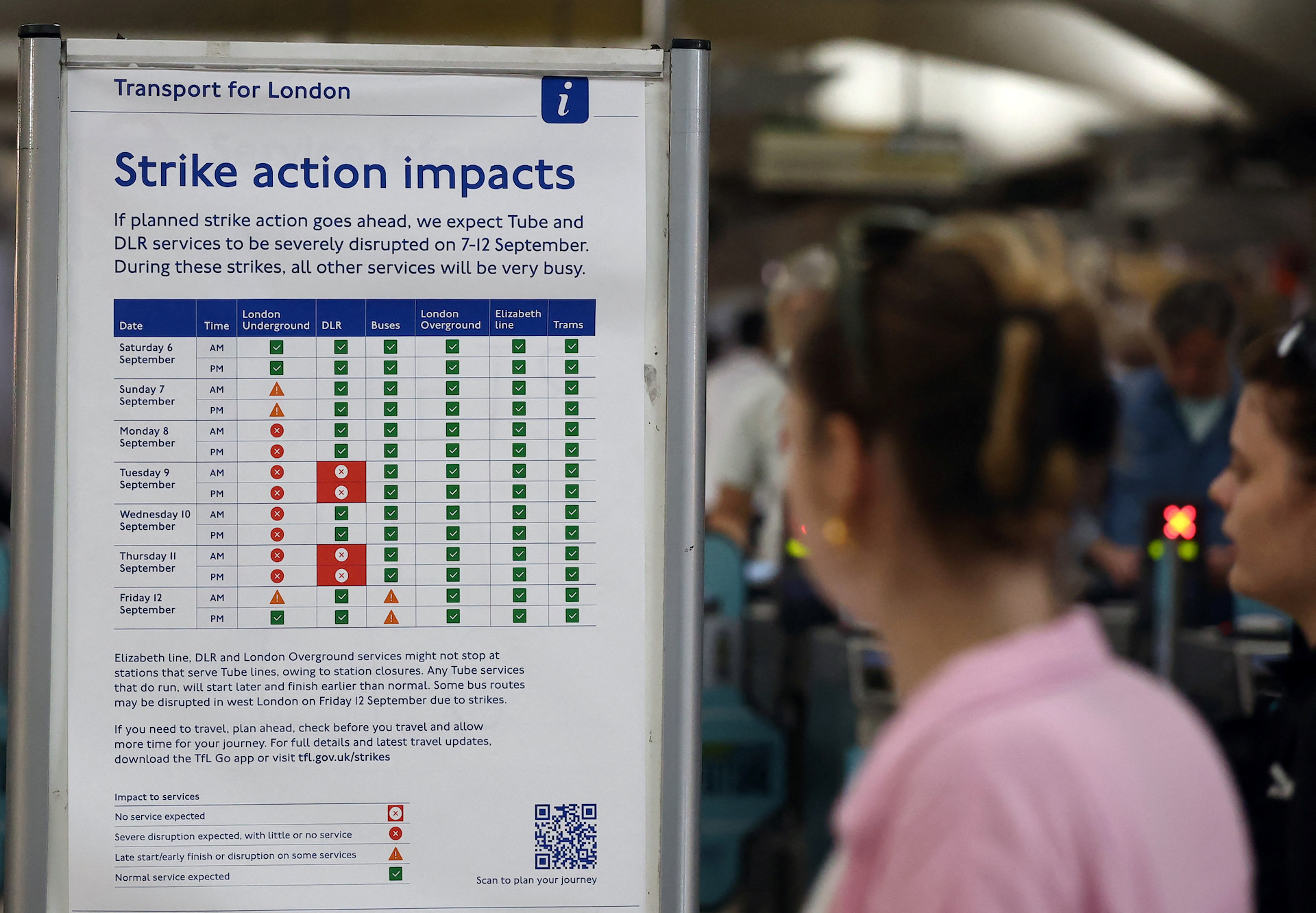 Από σήμερα και μέχρι την Πέμπτη δεν αναμένεται να κυκλοφορήσει σχεδόν κανένας συρμός του μετρό. Επιπλέον, η σιδηροδρομική υπηρεσία Docklands Light Railway, η οποία συνδέει τα οικονομικά κέντρα Canary Wharf και Σίτι του Λονδίνου, δεν θα λειτουργήσει την Τρίτη και την Πέμπτη.