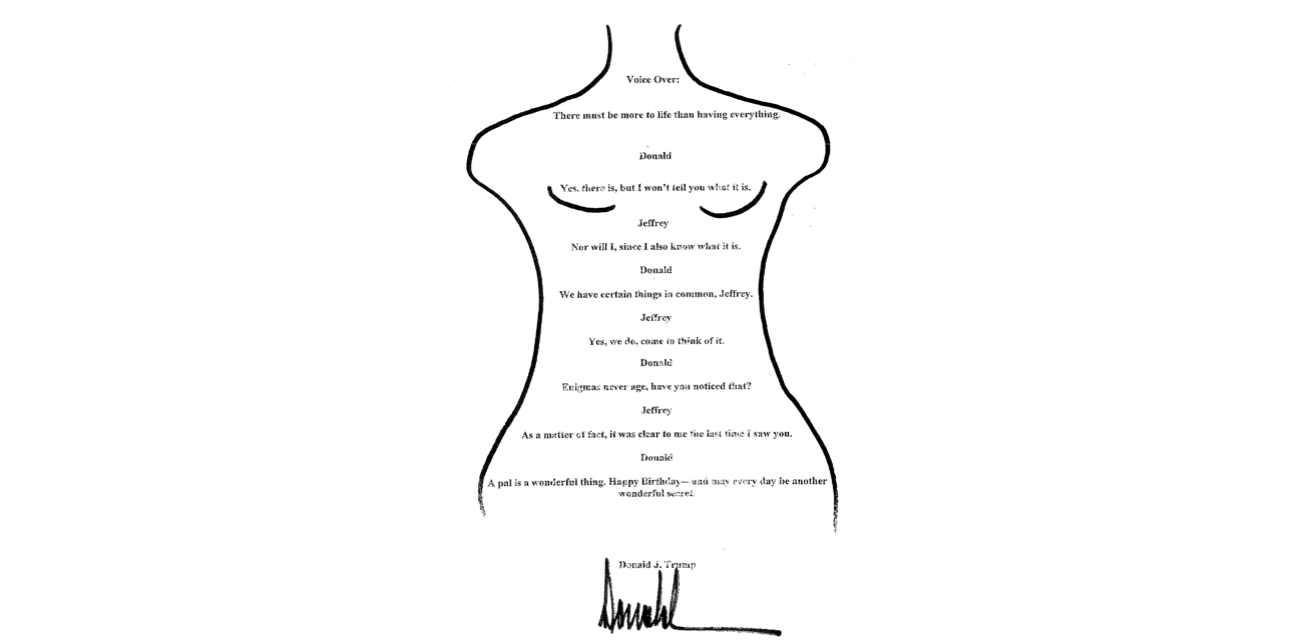 Οι Δημοκρατικοί του Κογκρέσου έδωσαν χθες στη δημοσιότητα το επίμαχο σημείωμα και το σεξουαλικού περιεχομένου σκίτσο που φημολογείται ότι είχε στείλει ο Ντόναλντ Τραμπ στον Τζέφρι Επσταϊν το 2003, με αφορμή την 50ή επέτειο των γενεθλίων του.