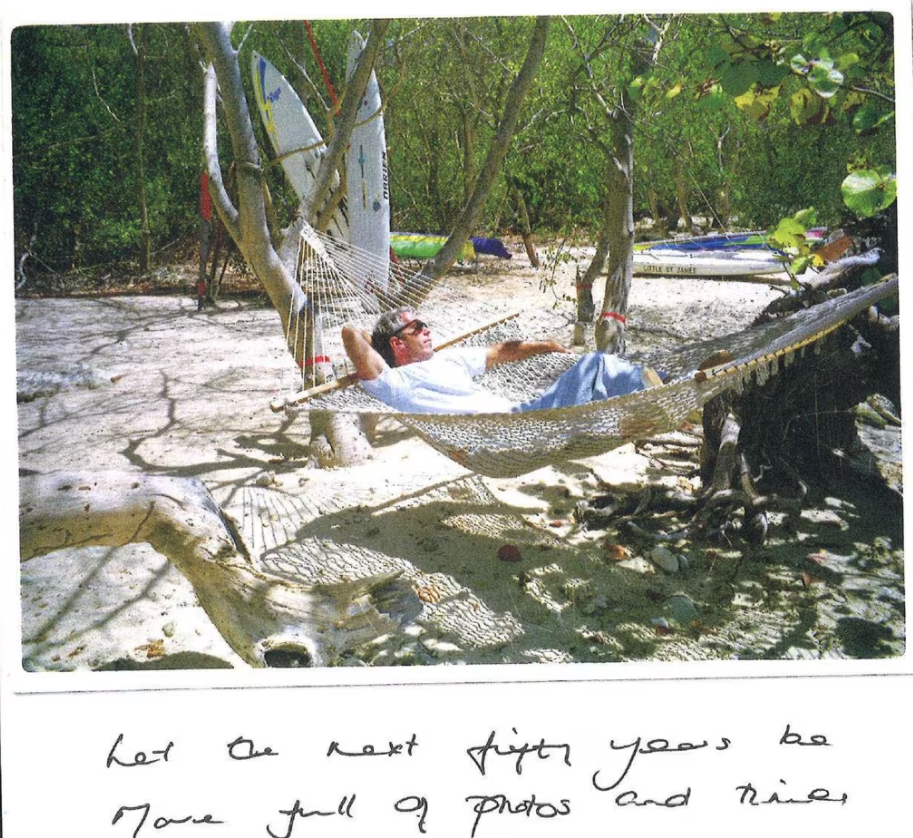 Το λεύκωμα τελειώνει με ένα κεφάλαιο με τίτλο «Τα επόμενα 50 χρόνια». Αποτελούνταν από δύο σελίδες, στις οποίες υπήρχε μια φωτογραφία του Επσταϊν σε μια αιώρα και μια εικόνα με την επιγραφή: «Να ξέρεις πότε κερδίζεις». Ηταν υπογεγραμμένο «με πολλή αγάπη, Γκισλέιν».