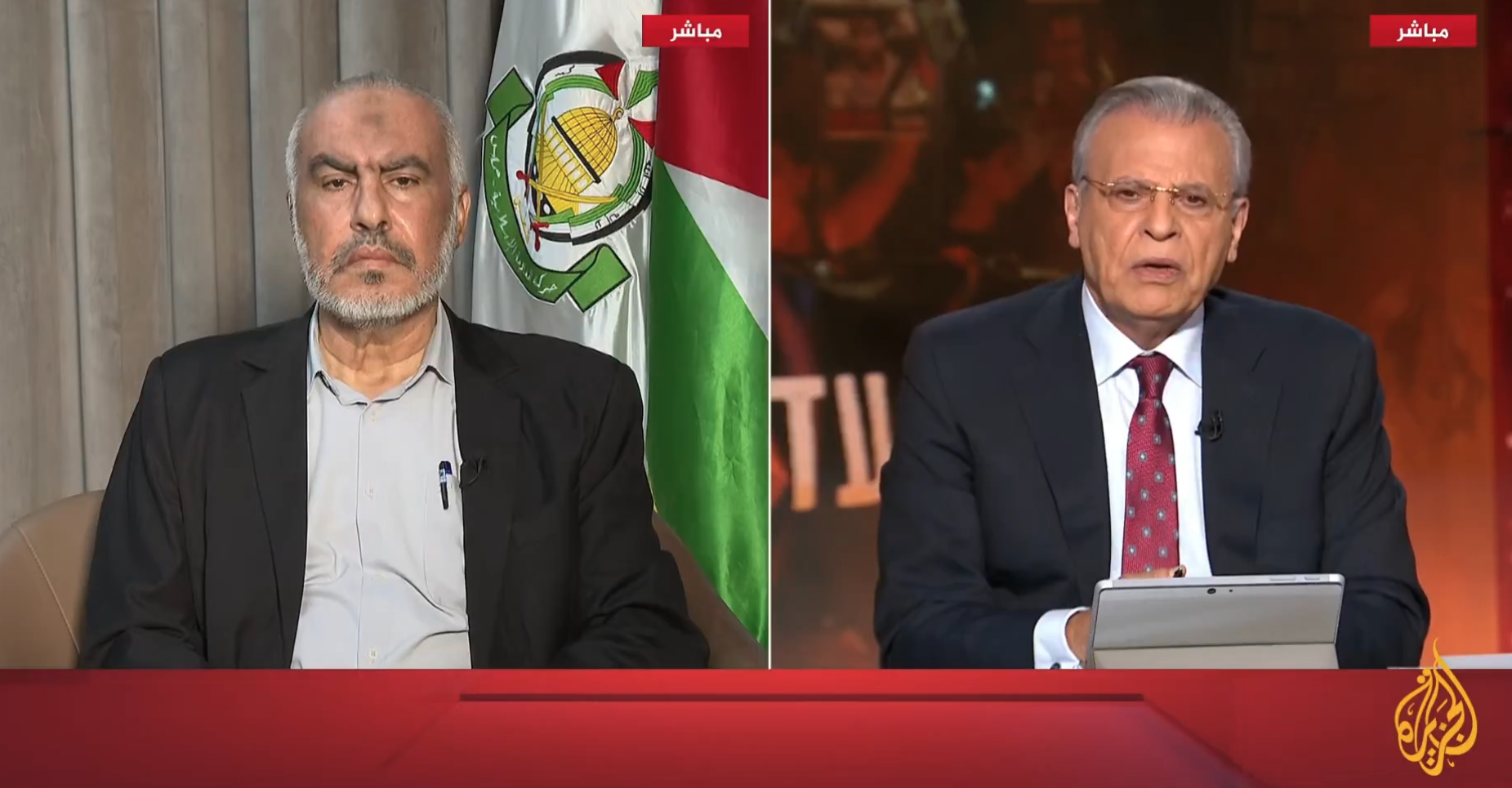 Ο Γαζί Χαμάντ, ένα από τα σημαντικότερα ηγετικά στελέχη της Χαμάς, εμφανίστηκε σήμερα το βράδυ σε συνέντευξη που μεταδόθηκε απευθείας στο τηλεοπτικό δίκτυο του Κατάρ, το Al Jazeera.