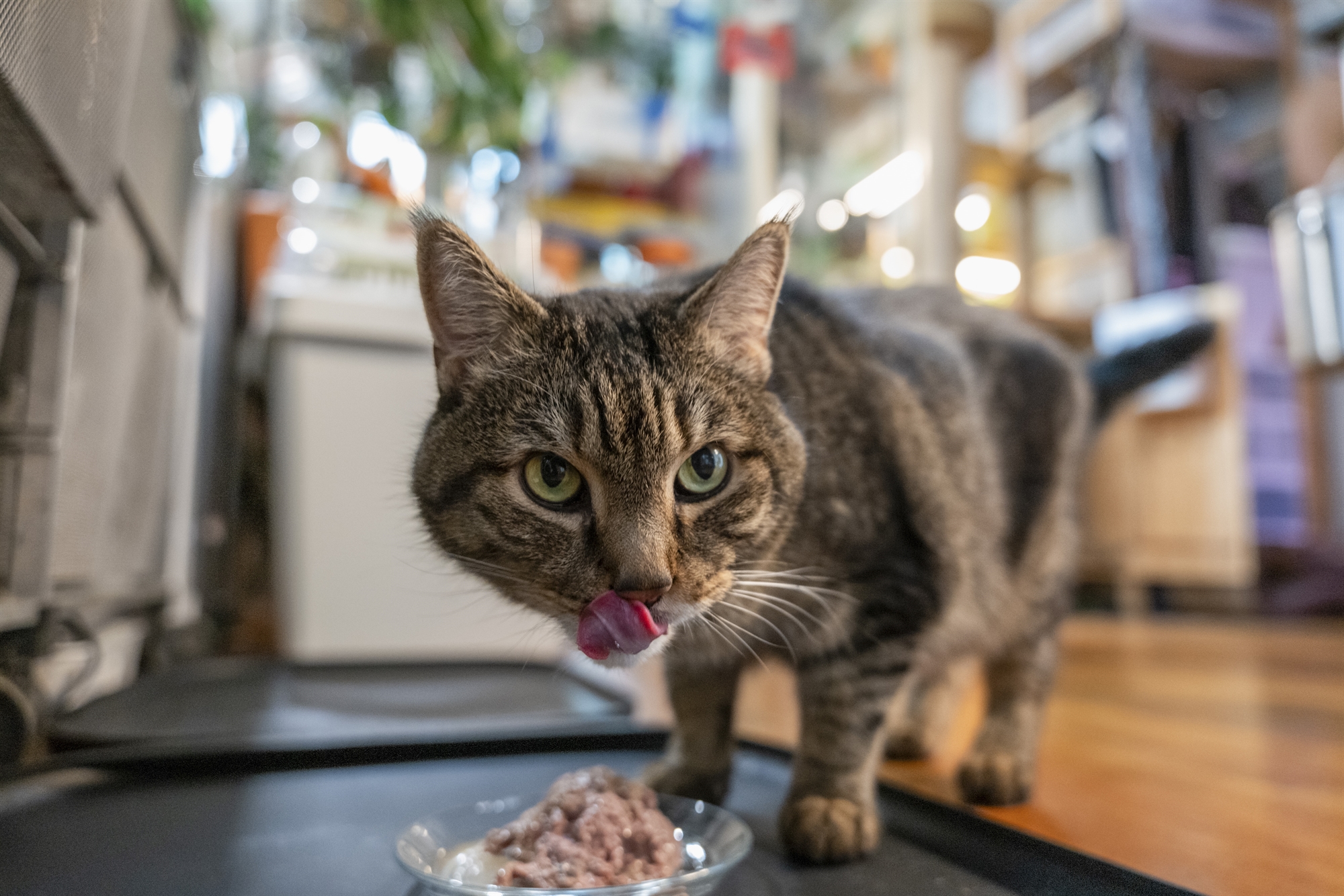 Η 31χρονη Τζόις Χσου, γραφίστρια στο Μπρούκλιν, ταΐζει και τις δύο γάτες της με ωμό κρέας. Οι ιδιοκτήτες κατοικιδίων μπορούν να προμηθευτούν έτοιμα ωμά γεύματα από το Διαδίκτυο. Ωστόσο, η ρουτίνα της Χσου είναι πιο περίπλοκη. Αλέθει η ίδια ένα μείγμα από κοτόπουλο, γαλοπούλα και βοδινό, αλλά και κουνέλι, μοσχοπόντικα και κάστορα (τα αγαπημένα τους, λέει).