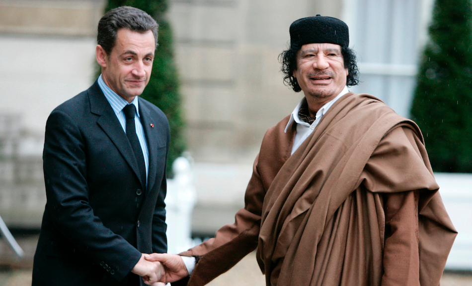 Με το ξέσπασμα της αραβικής άνοιξης το 2011, ωστόσο, ο Σαρκοζί, σε μια εντελώς διαφορετική γραμμή, είναι ο πρώτος αρχηγός κράτους που αναγνωρίζει το Εθνικό Μεταβατικό Συμβούλιο που σχηματίστηκε από τους αντάρτες και κάλεσε σε διεθνή στρατιωτική επέμβαση για την υποστήριξή τους. «Ο Σαρκοζί πρέπει να επιστρέψει τα χρήματα που δέχτηκε από τη Λιβύη για να χρηματοδοτήσει την προεκλογική του εκστρατεία», απάντησε τότε ο Σαΐφ αλ Ισλάμ Καντάφι, ένας από τους γιους του Μουαμάρ Καντάφι.