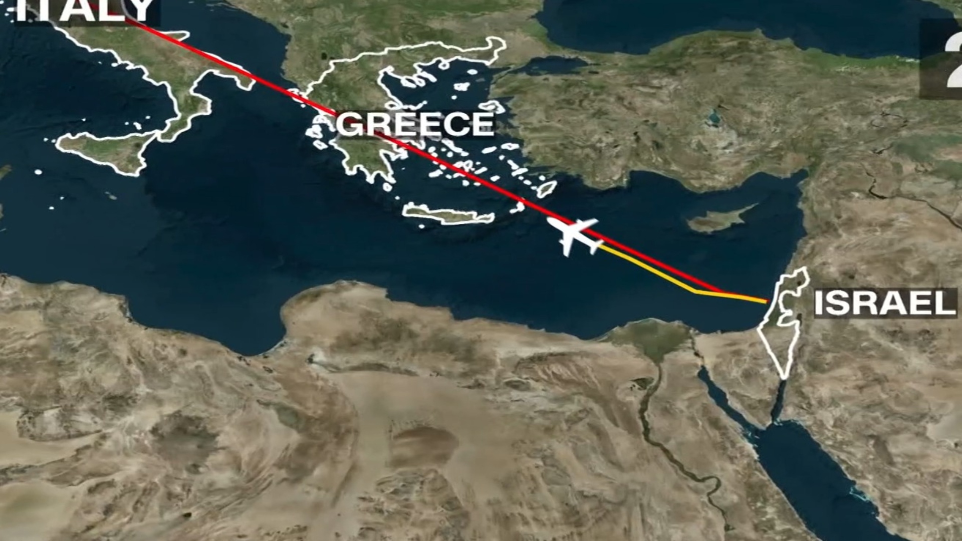Τα “Φτερά της Σιών”, το ισραηλινό αεροσκάφος, το αντίστοιχο του Air Force One των ΗΠΑ, πέρασαν πάνω από την Ελλάδα και την Ιταλία, αλλά στη συνέχεια κατευθύνθηκαν νότια προς τα στενά του Γιβραλτάρ πριν διασχίσει τον Ατλαντικό.