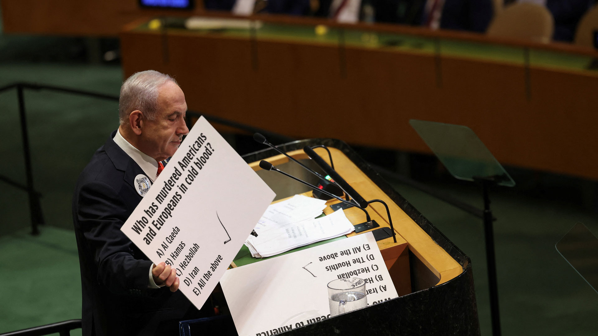 Ο πρωθυπουργός του Ισραήλ Μπέντζαμιν Νετανιάχου κατά τη διάρκεια της ομιλίας του στον ΟΗΕ έστειλε μήνυμα στους Ισραηλινούς ομήρους που κρατούνται στη Γάζα μέσω μεγαφώνων.