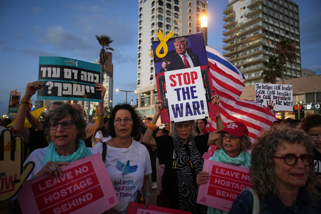Ισραηλινοί και συγγενείς ομήρων που κρατούνται στη Γάζα διαδήλωσαν μπροστά από το παράρτημα της αμερικανικής πρεσβείας στο Τελ Αβίβ, καλώντας τον Αμερικανό πρόεδρο, Ντόναλντ Τραμπ, να ασκήσει πίεση στον Νετανιάχου για να αποδεχτεί το σχέδιό του για τον τερματισμό του πολέμου στη Γάζα.