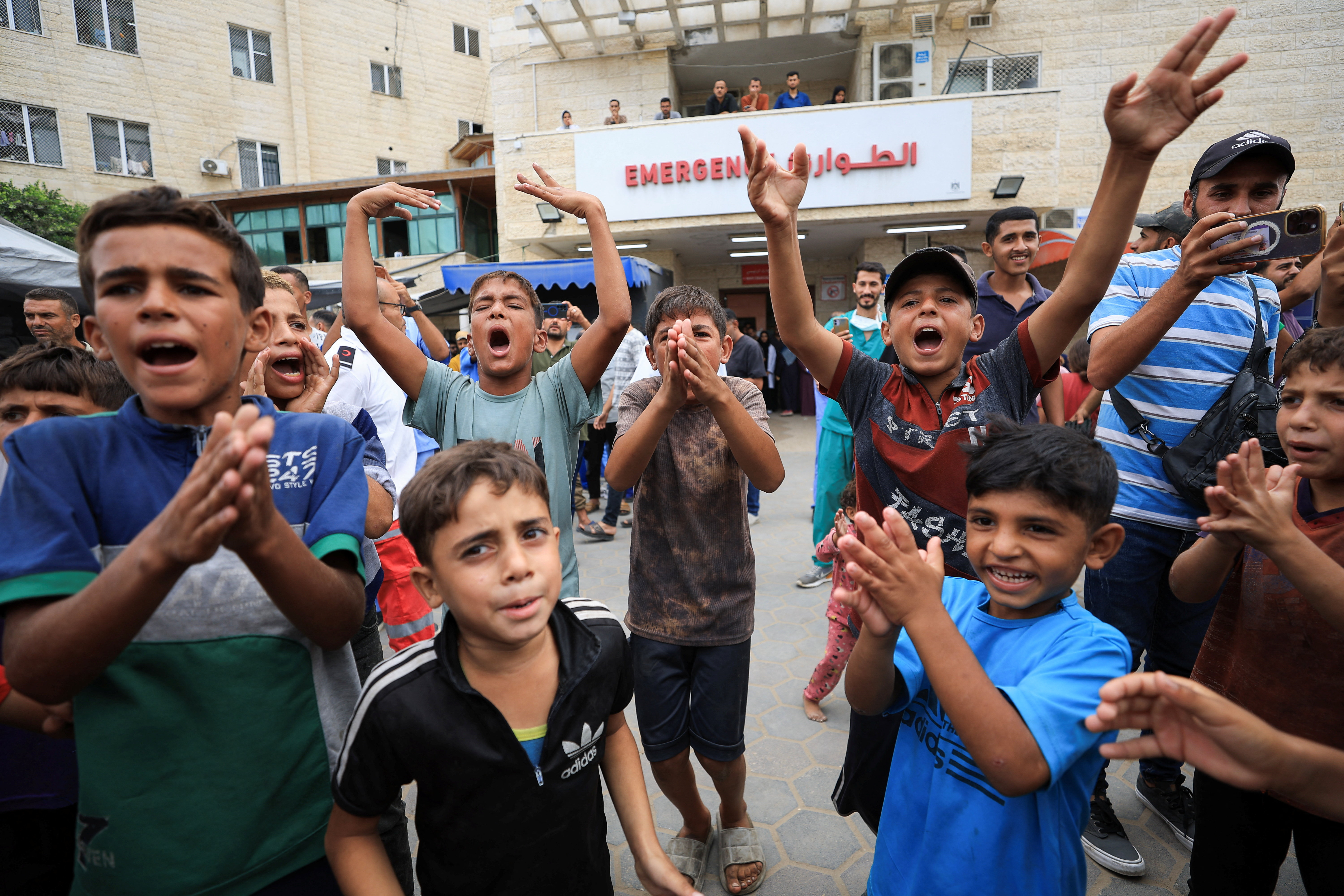 - Στη Γάζα, όπου οι περισσότεροι από τους πάνω από 2 εκατομμύρια κατοίκους έχουν εκτοπιστεί από τους ισραηλινούς βομβαρδισμούς, νέοι άνδρες χειροκροτούσαν στους κατεστραμμένους δρόμους, παρόλο που οι ισραηλινές επιδρομές συνεχίζονταν.