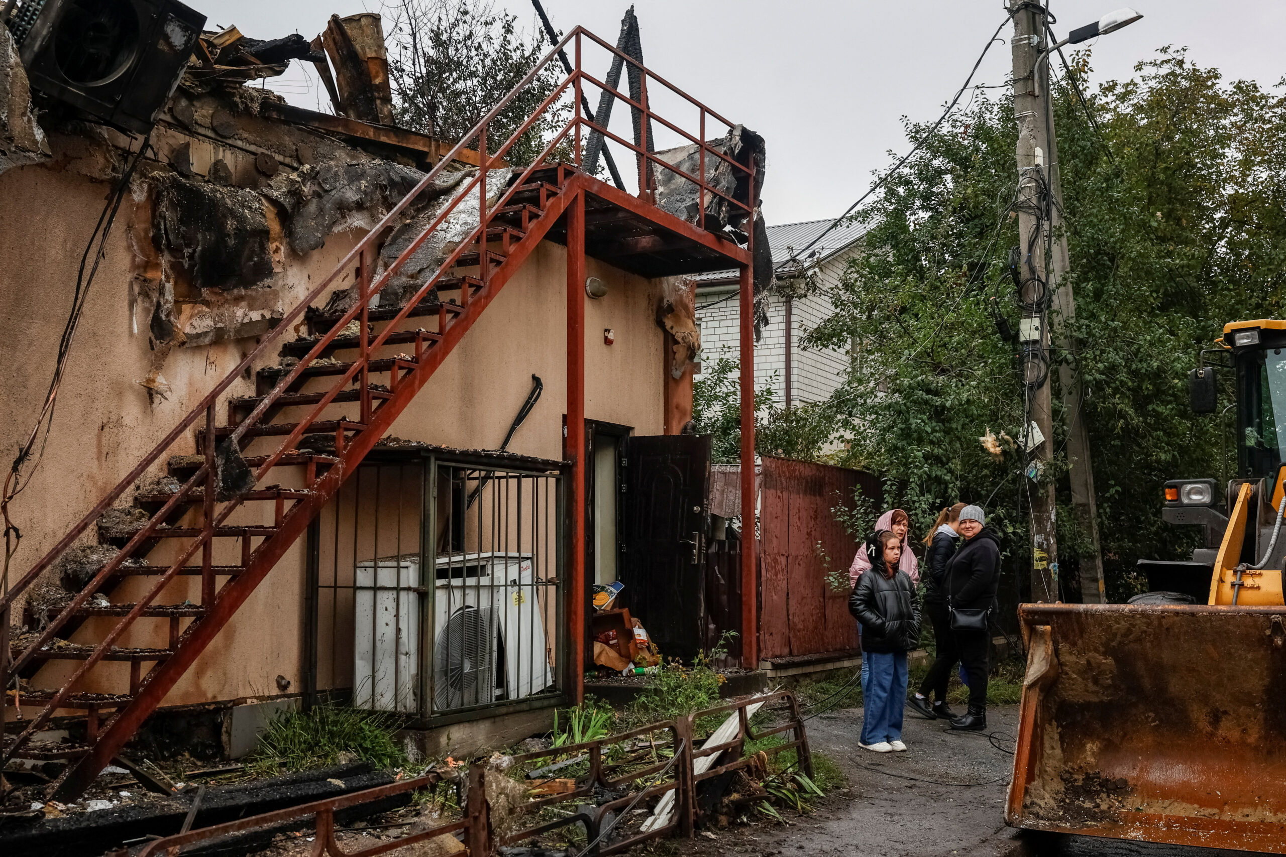Στο Κίεβο, πολυκατοικία στο κέντρο υπέστη ζημιές, ενώ στην αριστερή όχθη του Δνείπερου πολίτες περίμεναν σε στάσεις λεωφορείων, καθώς το μετρό δεν λειτουργούσε, ενώ σχηματίζονταν ουρές σε σημεία διανομής νερού.
