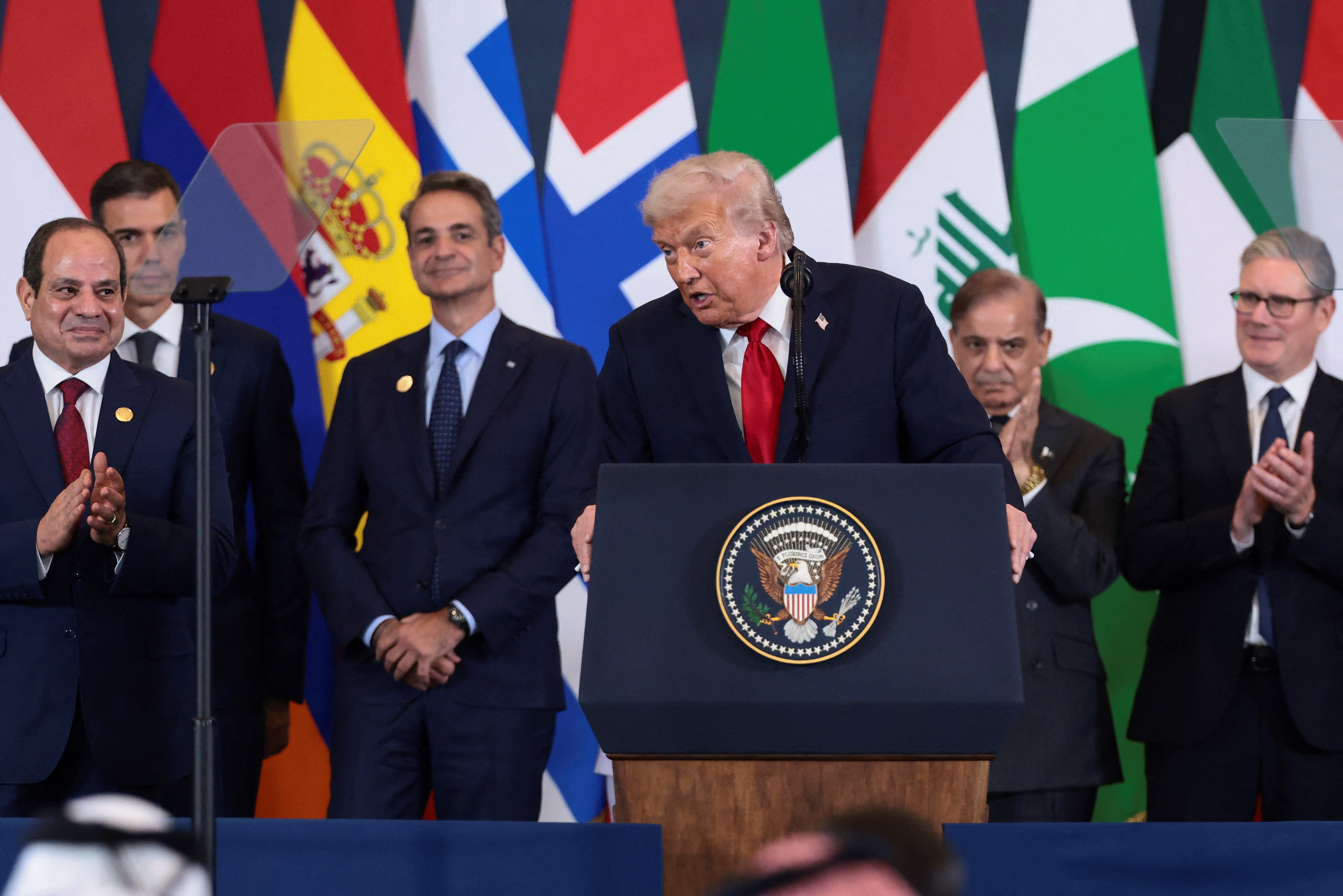 - 20:12Ο Τραμπ παραμένει στο βήμα - Χαιρετίζει τους παρόντες ηγέτες
