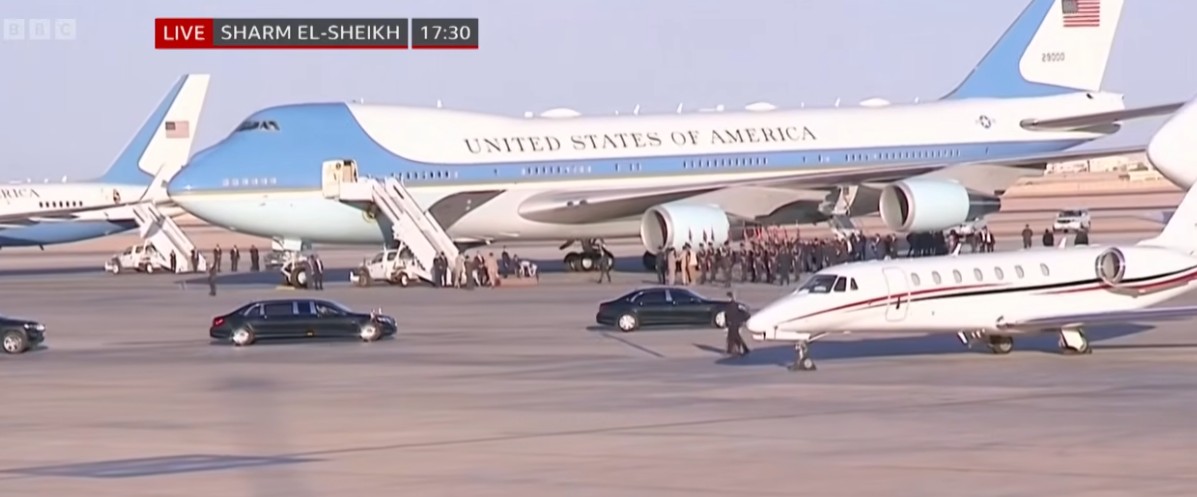- 17:24Το Air Force One προσεγγίζει το αεροδρόμιο του Σαρμ ελ Σέιχ