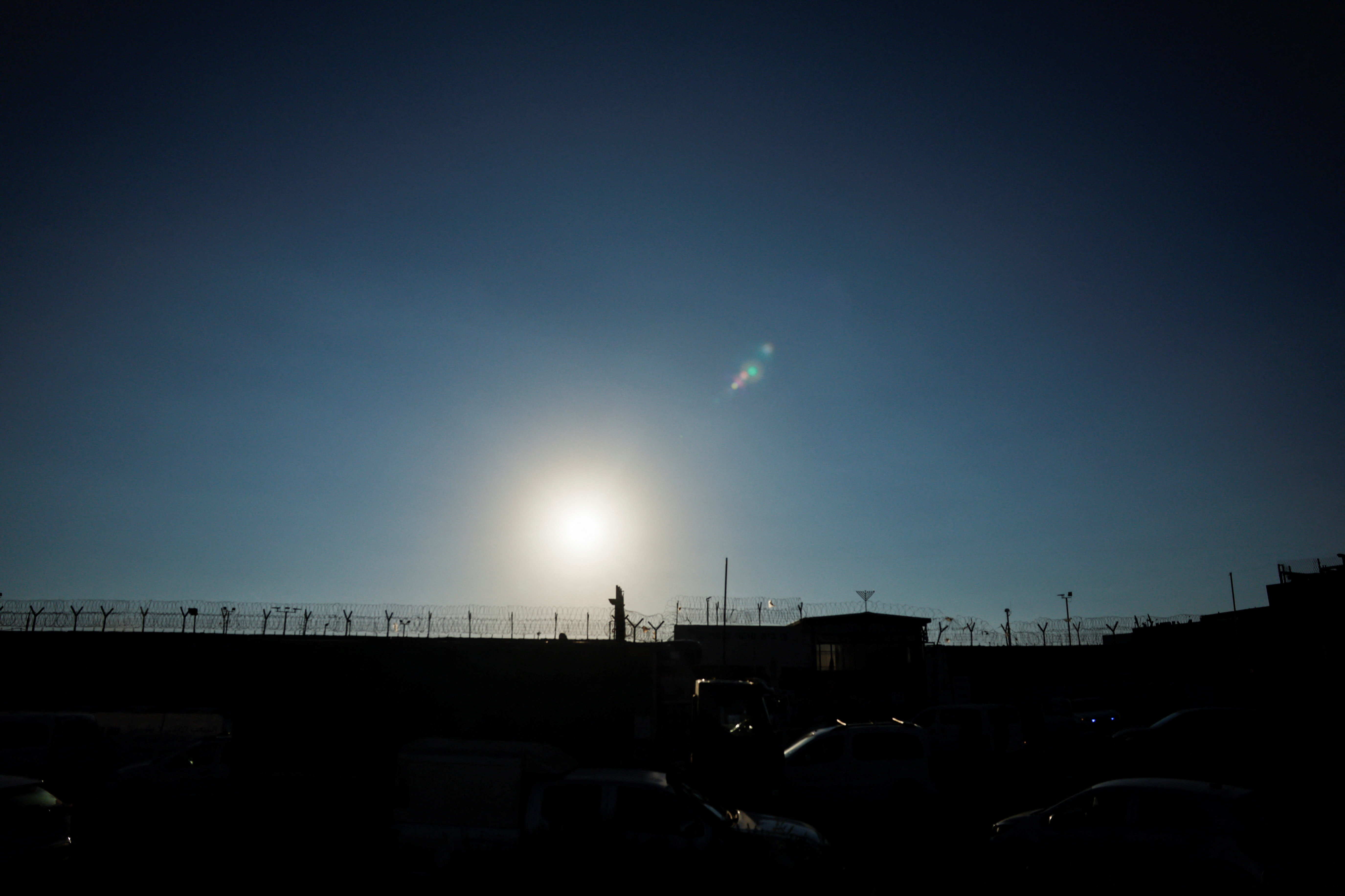 Ο ήλιος ανατέλλει πάνω από την ισραηλινή στρατιωτική φυλακή Oφερ, όπου βρίσκονται οι Παλαιστίνιοι κρατούμενοι που θα απελευθερωθούν σήμερα, κοντά στη Ραμάλα, στην κατεχόμενη από το Ισραήλ Δυτική Oχθη (REUTERS/Ammar Awad).