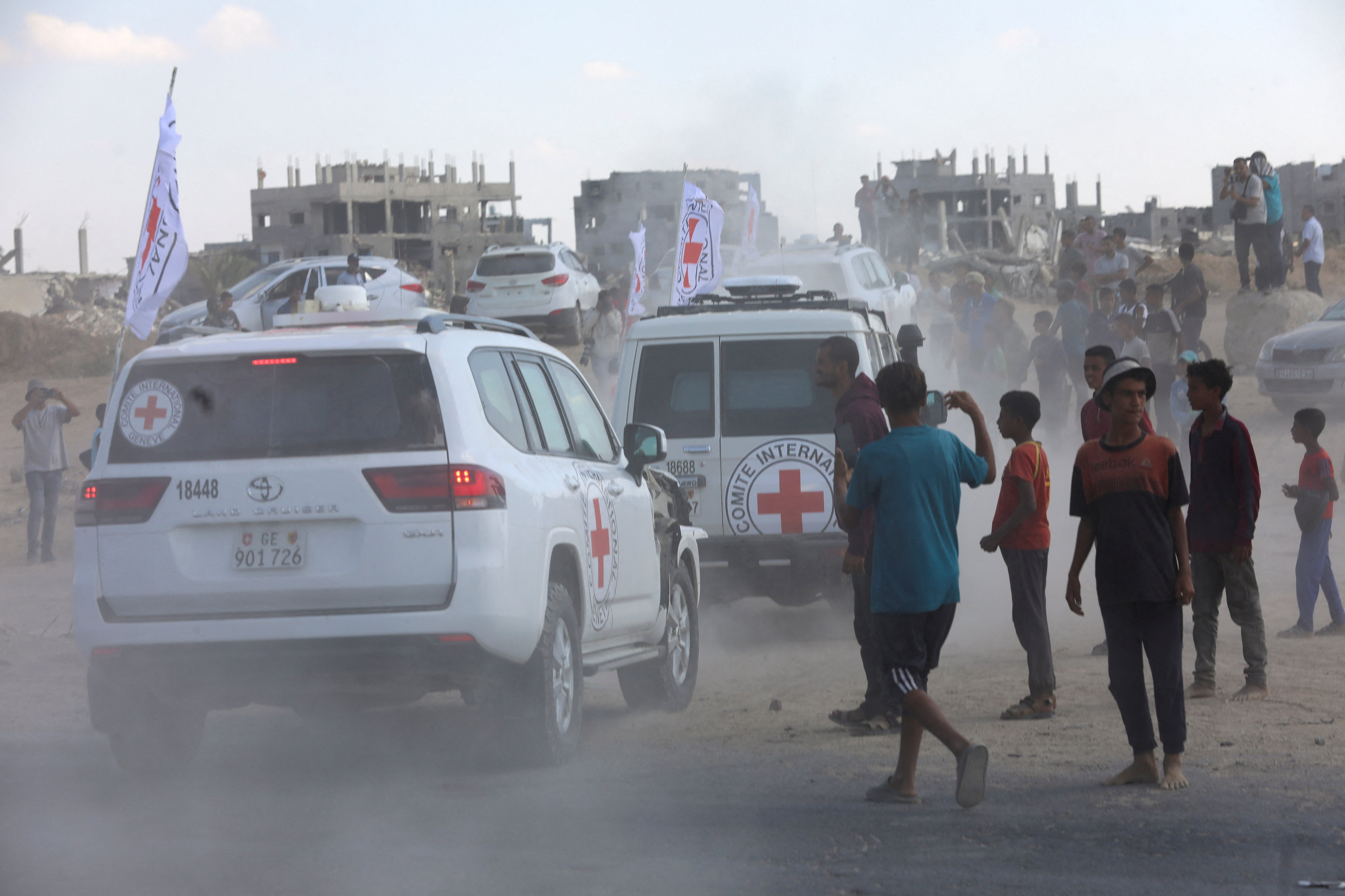 Αξιωματούχος που συμμετείχε στην επιχείρηση επιβεβαίωσε στο Reuters ότι ο Ερυθρός Σταυρός έφτασε στο πρώτο σημείο συνάντησης στη Γάζα. Ο Ερυθρός Σταυρός ανακοίνωσε ότι δεν θα παράσχει πλάνα από απελευθερωμένους ομήρους και κρατούμενους κατά τη διάρκεια των επιχειρήσεων, «από σεβασμό στην αξιοπρέπεια και στην κατάστασή τους, καθώς και σε ζητήματα που σχετίζονται με την ασφάλειά τους».