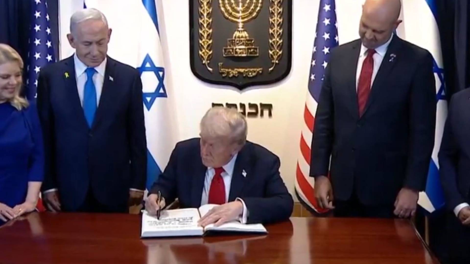«Μια σπουδαία και όμορφη μέρα. Μια νέα αρχή»: Αυτό ήταν το ιδιόχειρο σημείωμα του Αμερικανού προέδρου, Ντόναλντ Τραμπ, στο βιβλίο επισκεπτών της Κνεσέτ λίγο πριν από την ιστορική ομιλία του.