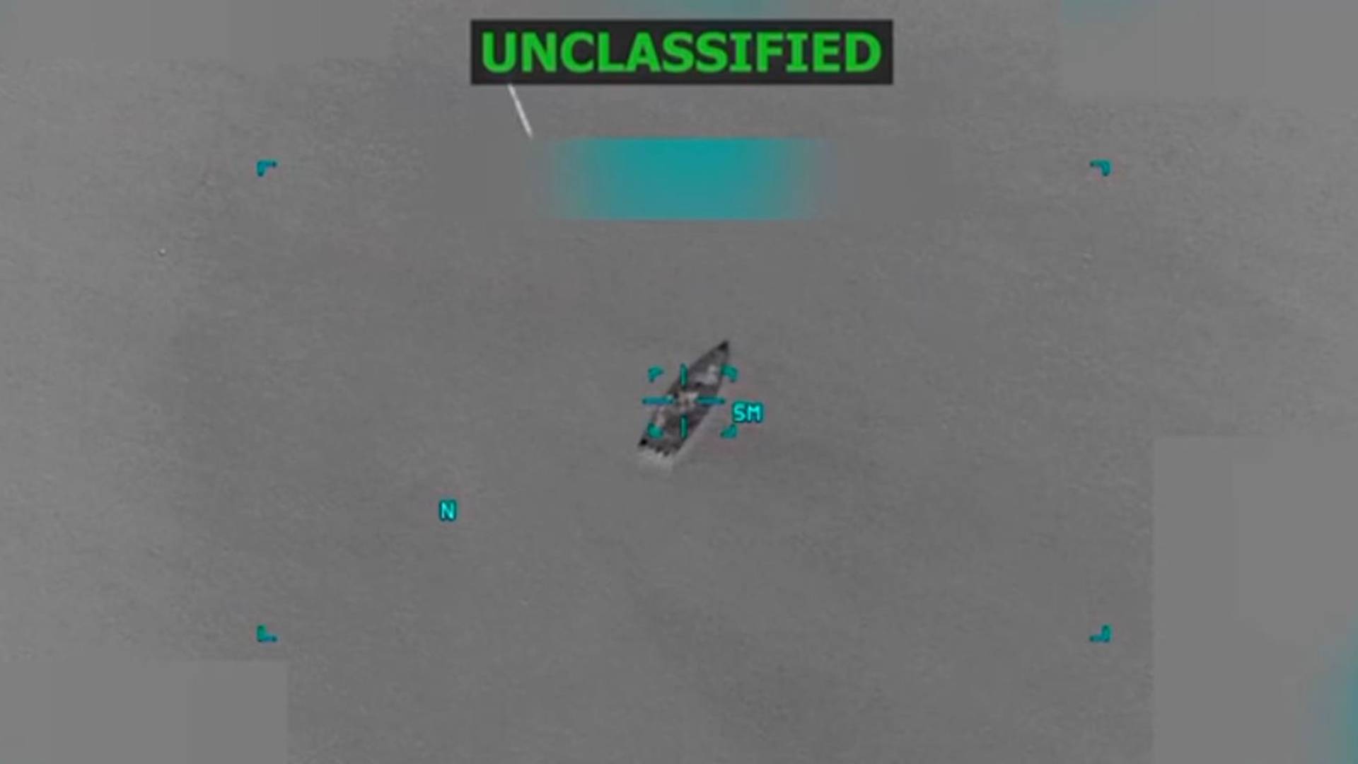 Σε ασπρόμαυρο βίντεο που κοινοποίησε στο Χ ο υπουργός Αμυνας των ΗΠΑ, Πιτ Χέγκσεθ, εμφανίζεται το μικρό σκάφος στη θάλασσα και, λίγα δευτερόλεπτα αργότερα, δέχεται πλήγμα από ψηλά και εκρήγνυται. Στη συνέχεια, εμφανίζεται να επιπλέει φλεγόμενο για αρκετά δευτερόλεπτα.