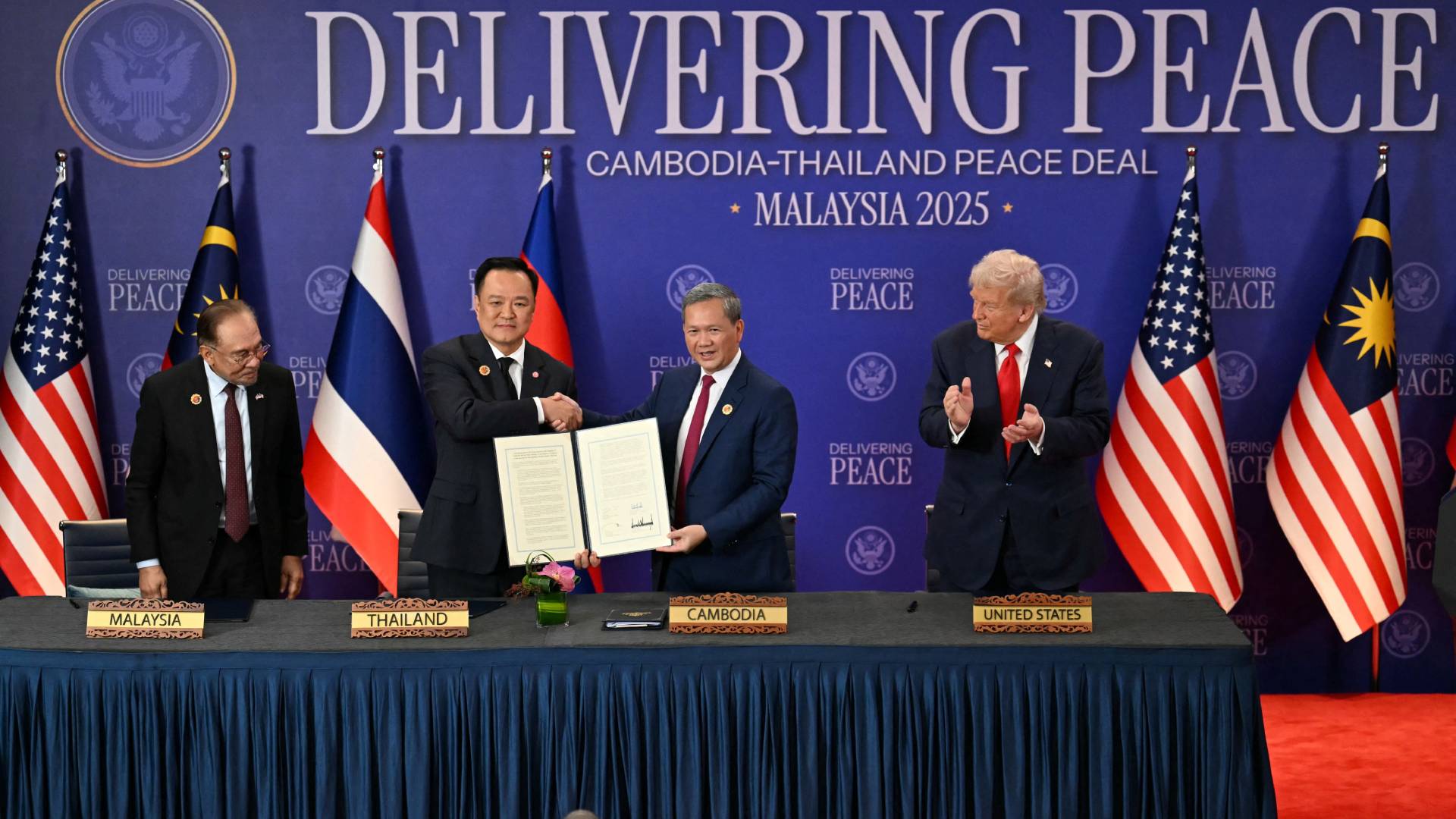 Οι συμφωνίες υπεγράφησαν έπειτα από τελετή με τους ηγέτες των κρατών για τη διευρυμένη συμφωνία κατάπαυσης πυρός μεταξύ της Ταϊλάνδης και της Καμπότζης.