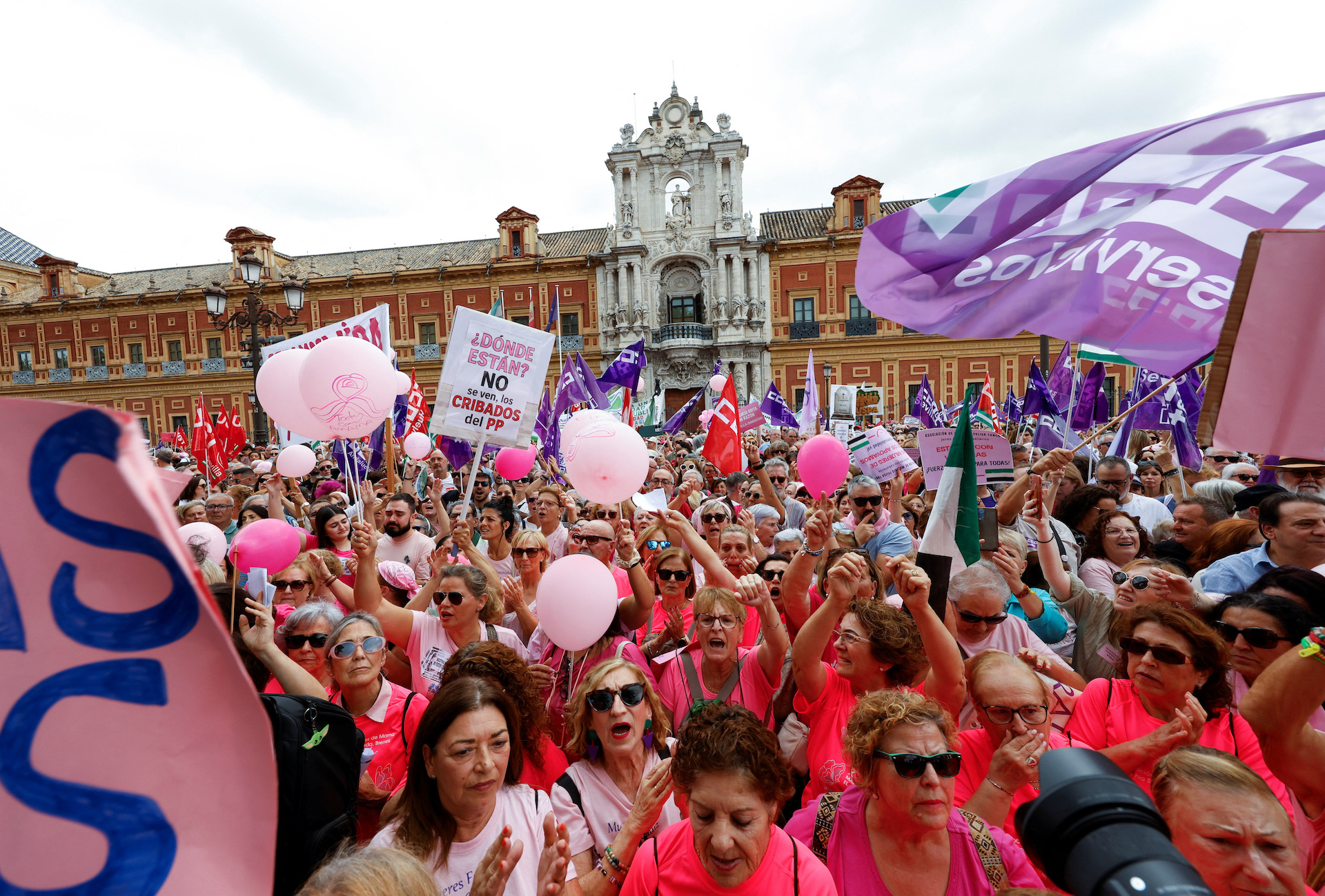 Πολλές χιλιάδες διαδηλωτές, στην πλειονότητά τους γυναίκες, συγκεντρώθηκαν σήμερα το μεσημέρι στη Σεβίλλη για να διαμαρτυρηθούν για τον τρόπο με τον οποίο οι τοπικές αρχές χειρίστηκαν το θέμα της καθυστερημένης έκδοσης αποτελεσμάτων στις εξετάσεις για τον καρκίνο του μαστού, μια διαμάχη που έχει εξελιχθεί σε πολιτική κρίση.