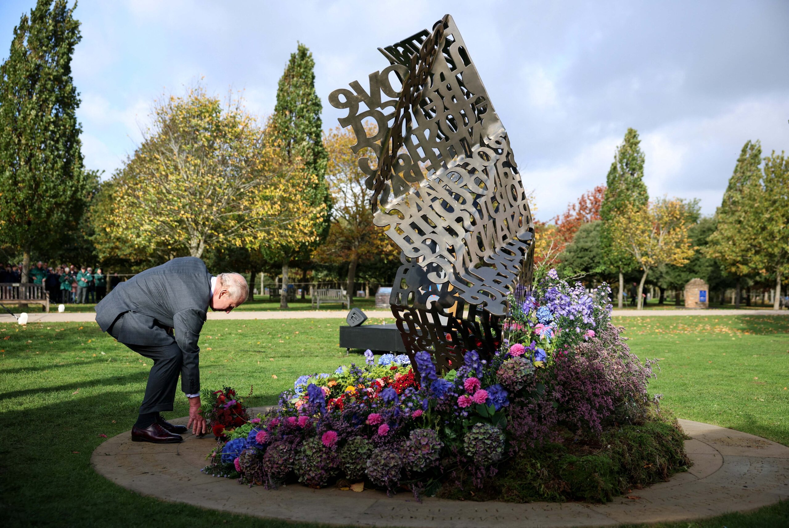 Ο Κάρολος, ανώτατος διοικητής των βρετανικών Ενόπλων Δυνάμεων, κατέθεσε λουλούδια στο Εθνικό Μνημείο Arboretum στο Στάφορντσαϊρ.