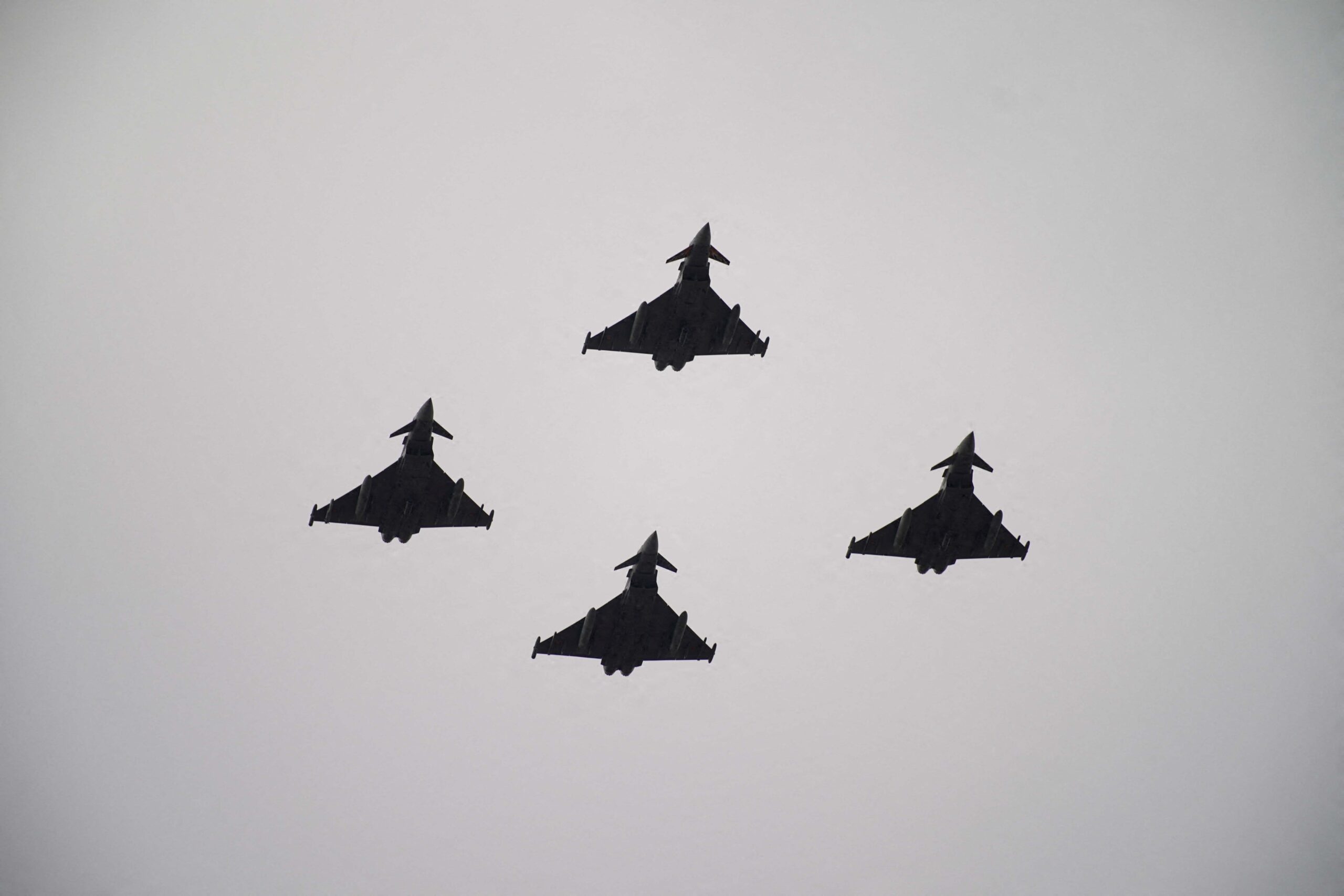 «Οι εργασίες για τα μαχητικά αεροσκάφη Eurofighter Typhoon που θα προμηθευτούν από το Κατάρ και το Ομάν για να καλύψουν τις ανάγκες της αποστολής της πολεμικής μας αεροπορίας συνεχίζονται», ανέφερε το υπουργείο.