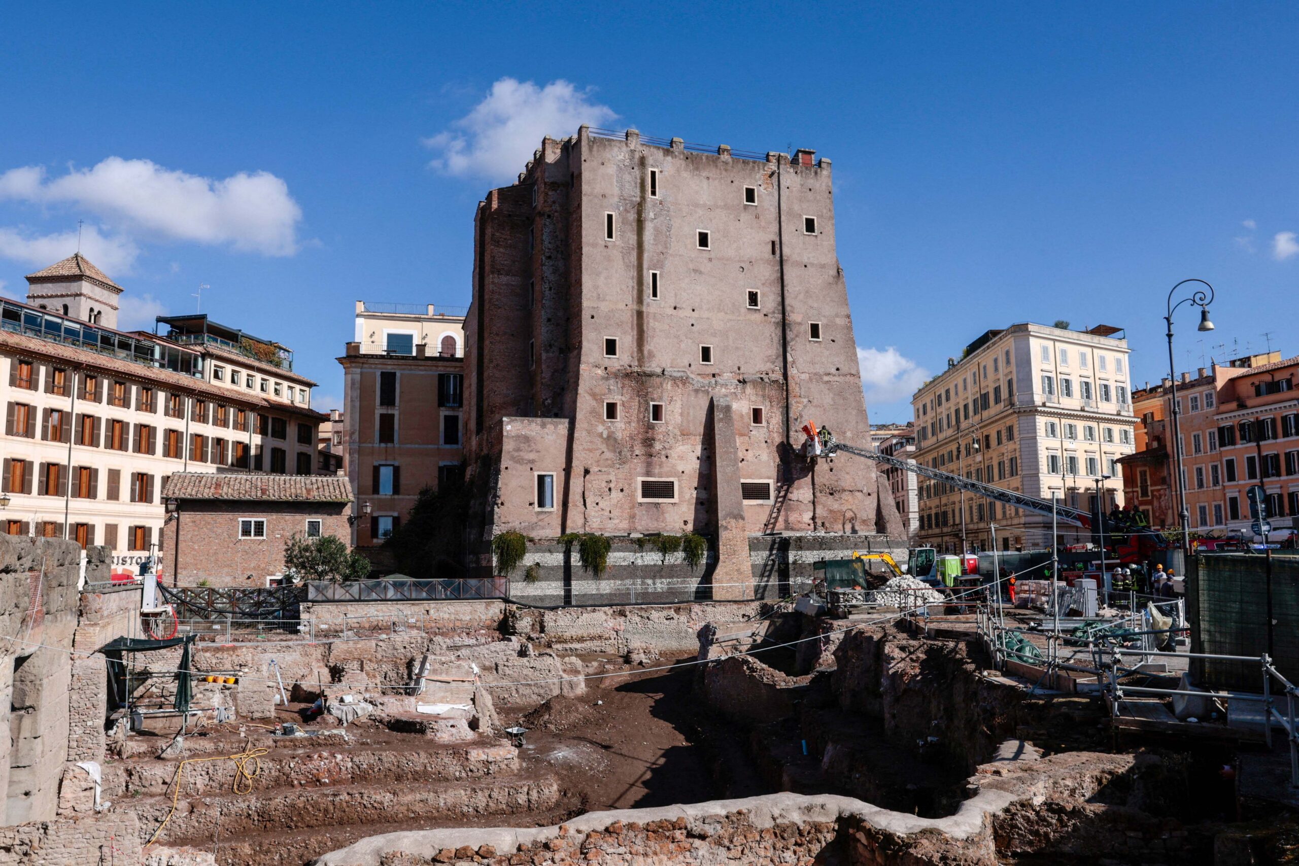 Λόγω των εργασιών αποκατάστασης, η περιοχή γύρω από τον πύργο είχε αποκλειστεί για τους πεζούς. Το κτίριο ανεγέρθη από τον Πάπα Ιννοκέντιο Γ΄ για την οικογένειά του στις αρχές του 13ου αιώνα.