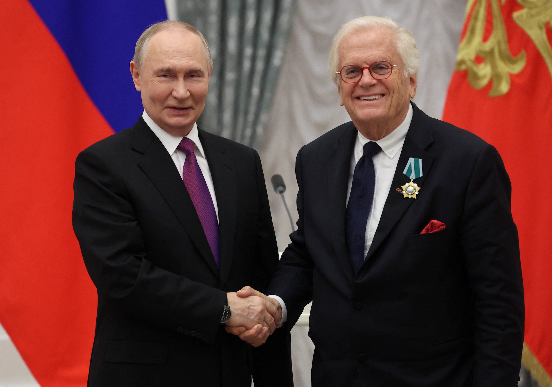 Ο Ρώσος πρόεδρος Βλαντίμιρ Πούτιν είχε νωρίτερα, την περασμένη Τρίτη, απονείμει παράσημο στον 81χρονο Γερμανό μουσικό, υποστηρίζοντας ότι «για πολλά χρόνια, ο Γιούστους Φραντς συνέβαλλε γόνιμα στην ενίσχυση των στενότερων σχέσεων μεταξύ της Ρωσίας και της Ομοσπονδιακής Δημοκρατίας της Γερμανίας».