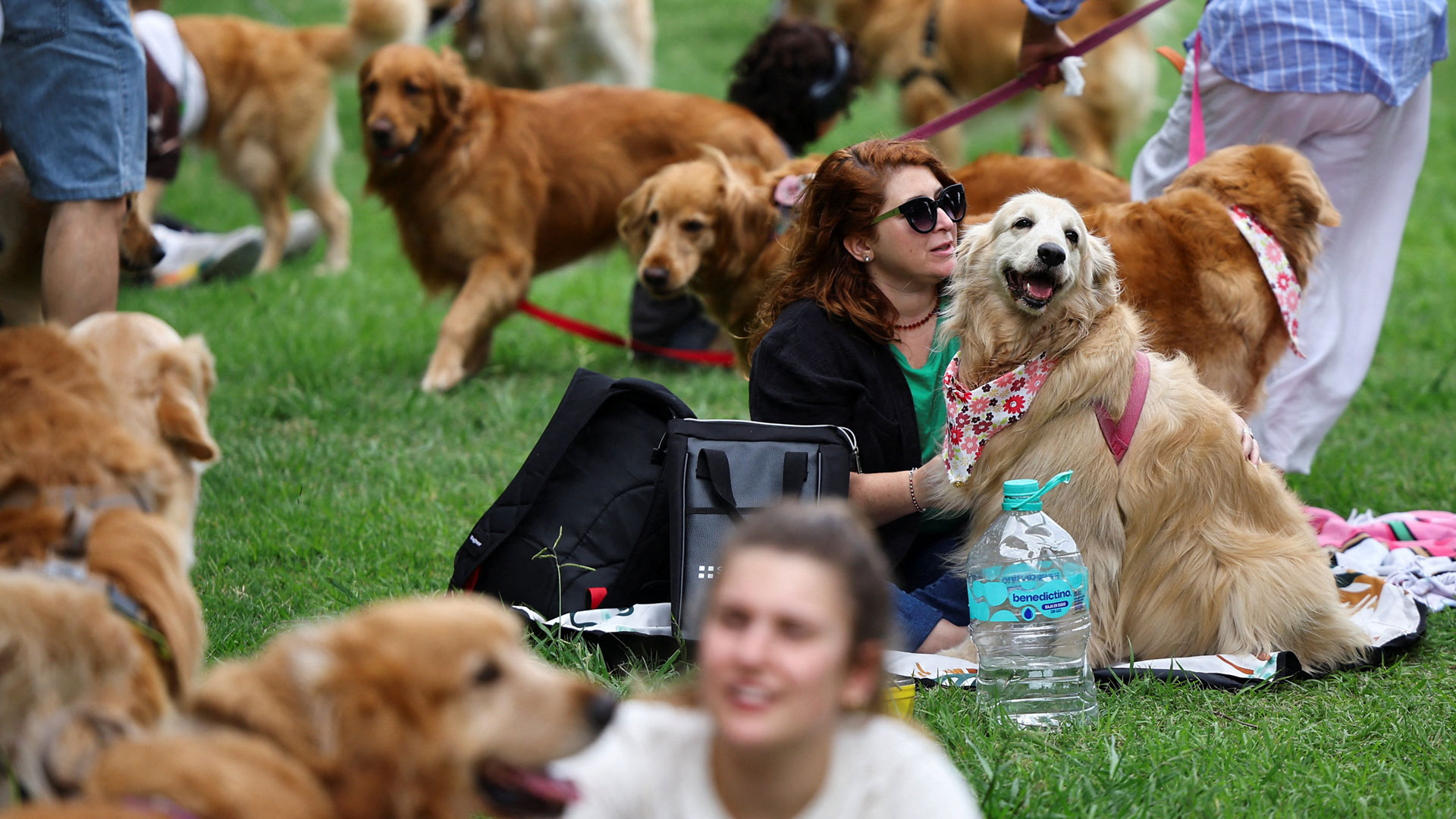 Γκόλντεν ριτρίβερ κάθε ηλικίας, από ενθουσιώδη κουτάβια που έπαιζαν στη λάσπη έως πιο μεγάλα που περιφέρονταν με σκουφάκια του Αγιου Βασίλη και ευφάνταστα κοστούμια, γέμισαν το πάρκο, ενώ οι ιδιοκτήτες του κάθισαν να πιουν μάτε, ένα διάσημο ρόφημα της Αργεντινής, και να τραβήξουν φωτογραφίες.