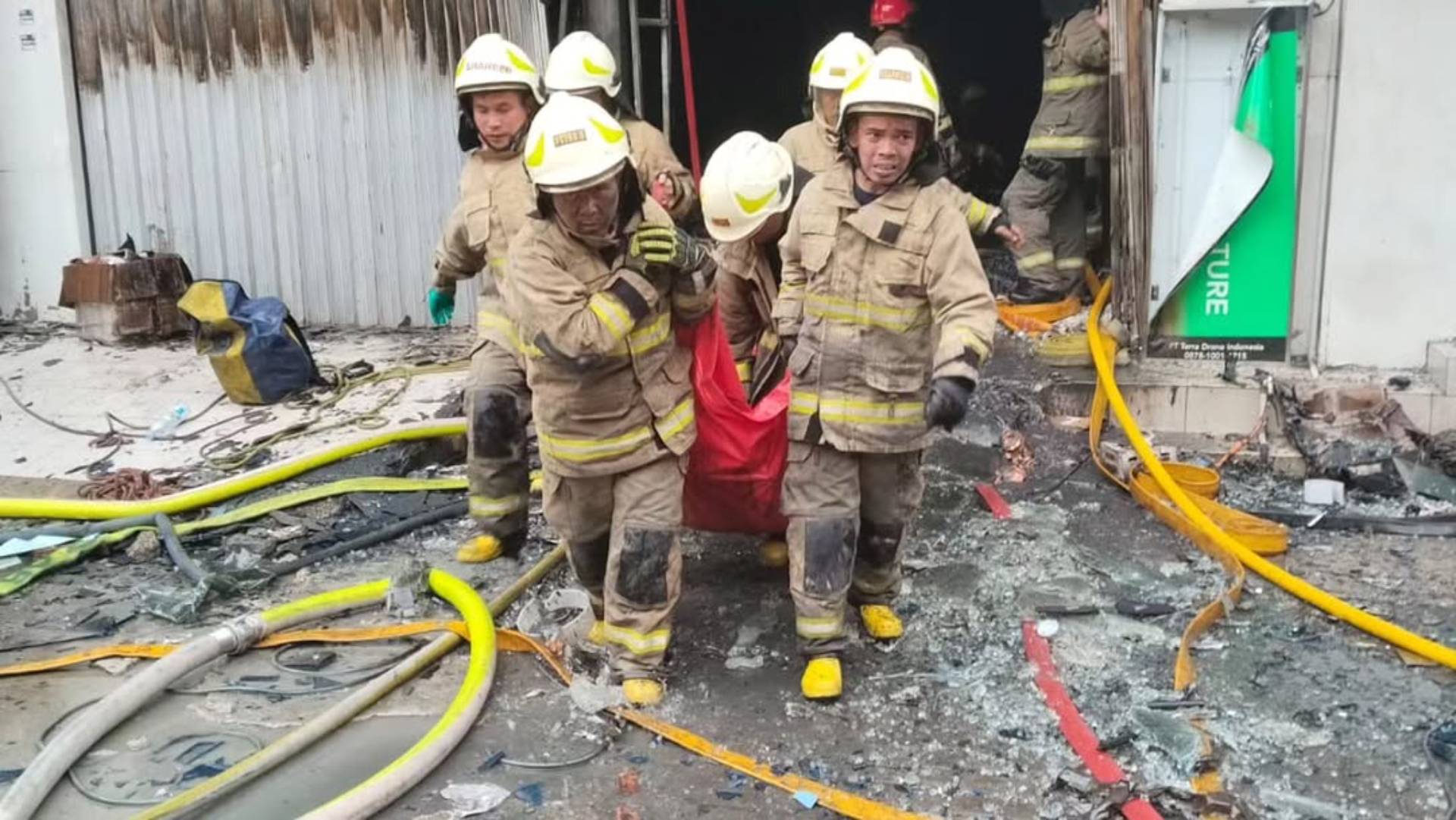 Οπτικό υλικό που προβλήθηκε από το Kompas TV δείχνει δεκάδες πυροσβέστες να προσπαθούν να απομακρύνουν ανθρώπους από το κτίριο και κάποιους να μεταφέρουν εκτός κτιρίου σάκους για σορούς.