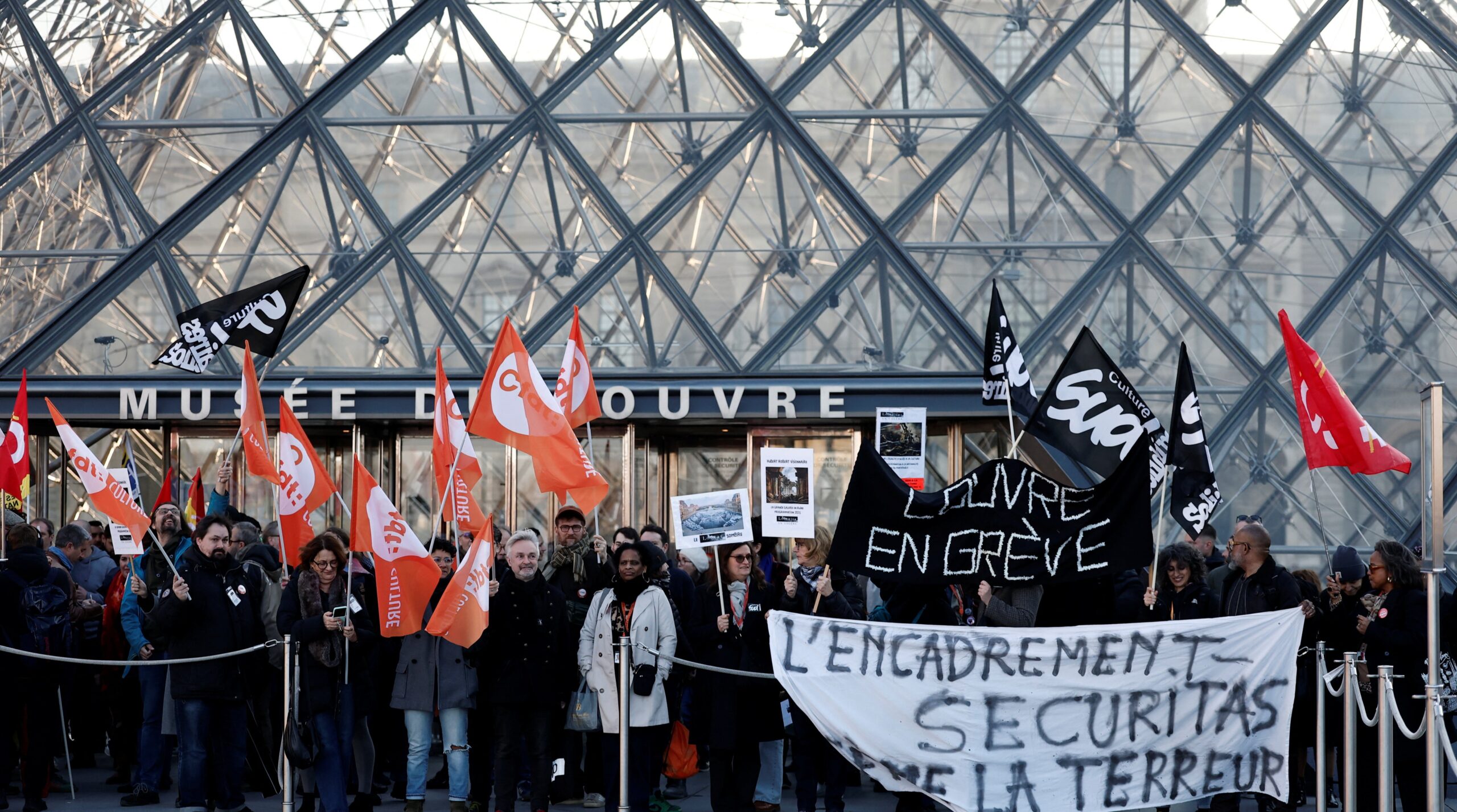 Το προσωπικό κάνει λόγο για κακή κτιριακή κατάσταση και ελλείψεις προσωπικού, ενώ αφήνει αιχμές κατά της διοίκησης υπό την πρόεδρο Λοράνς ντε Καρ, που ηγείται του μουσείου από το 2021.