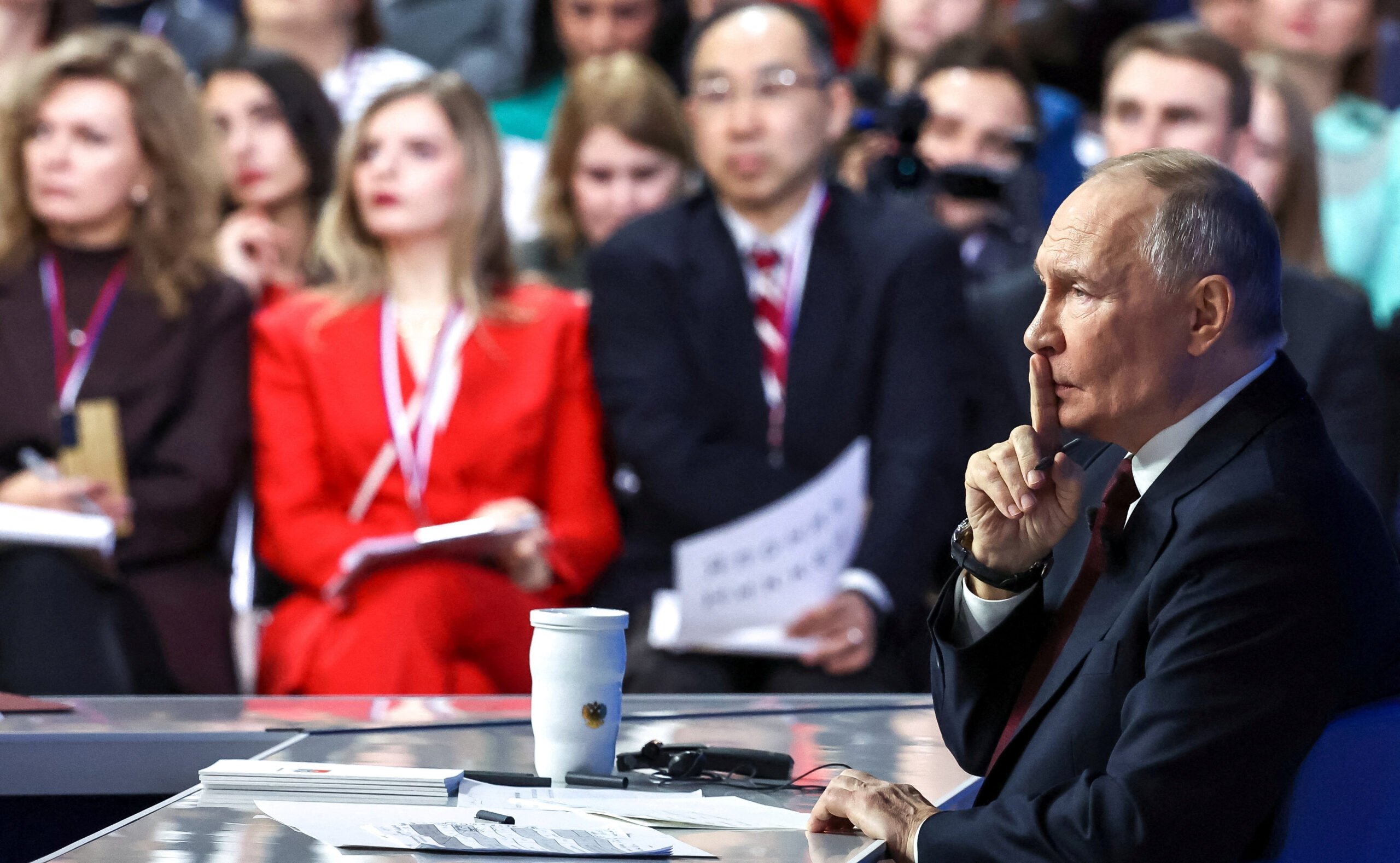 Η ετήσια μαραθώνια συνέντευξη του Βλαντιμίρ Πούτιν επιβεβαίωσε και φέτος ότι δεν λειτουργεί ως βήμα δημόσιας λογοδοσίας, αλλά σαν ελεγχόμενη σκηνή μετάδοσης των σκέψεων του επικεφαλής του Κρεμλίνου.