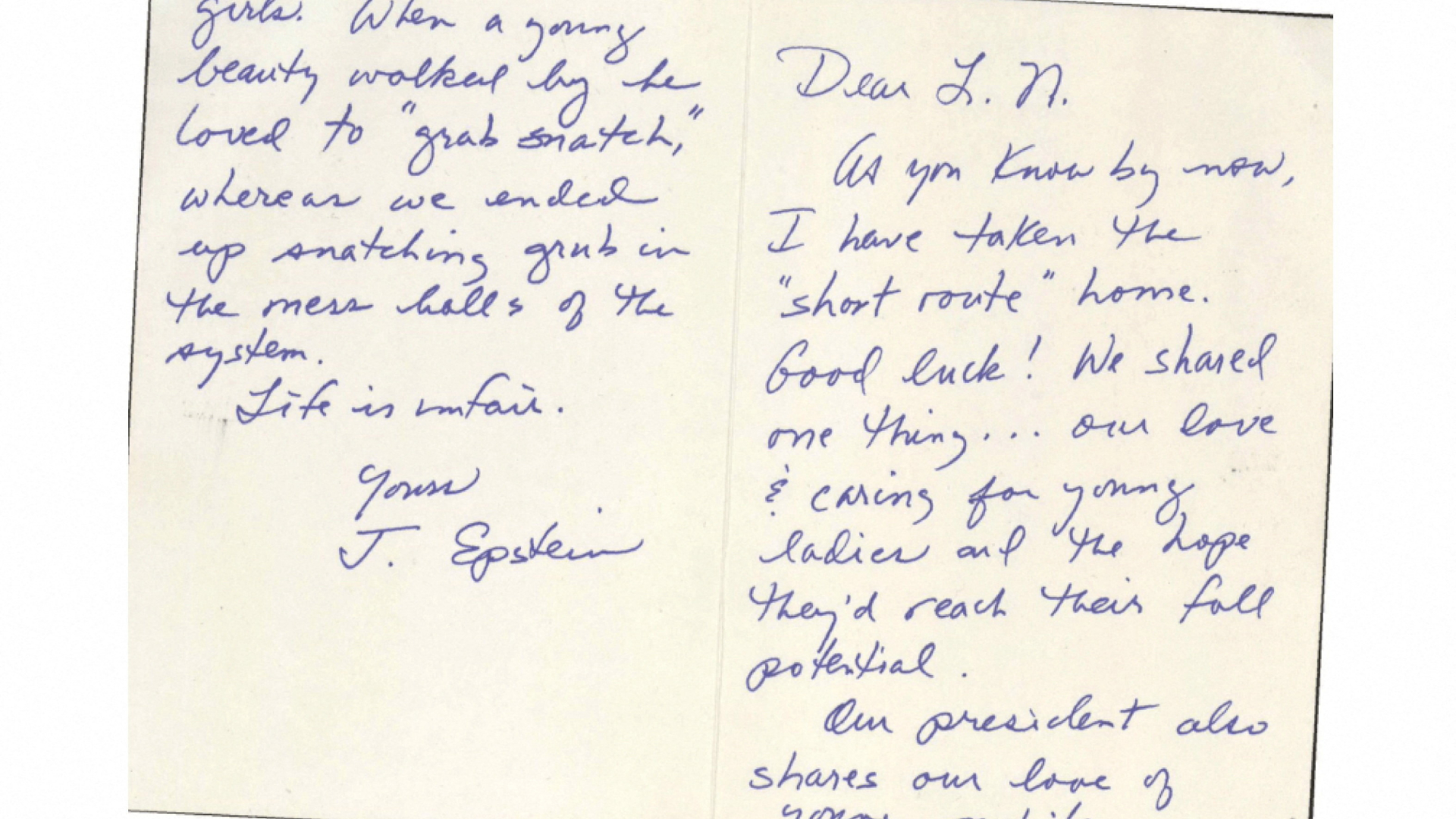 Η χειρόγραφη κάρτα περιήλθε στην κατοχή της κυβέρνησης όταν επεστράφη στην ομοσπονδιακή φυλακή της Νέας Υόρκης ως «ανεπίδοτη», μετά τον θάνατο του Επσταϊν που αποδόθηκε σε αυτοκτονία. Ενα άλλο έγγραφο που δημοσιοποίησε η κυβέρνηση δείχνει ότι το FBI ζήτησε να γίνει γραφολογική ανάλυση για να καθοριστεί εάν την είχε γράψει ο Επσταϊν. Αγνωστο παραμένει αν έγινε τελικώς ανάλυση.