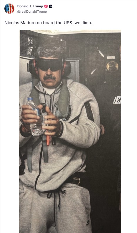 - 18:27Ο Τραμπ δημοσίευσε εικόνα του Μαδούρο από το USS Iwo Jima