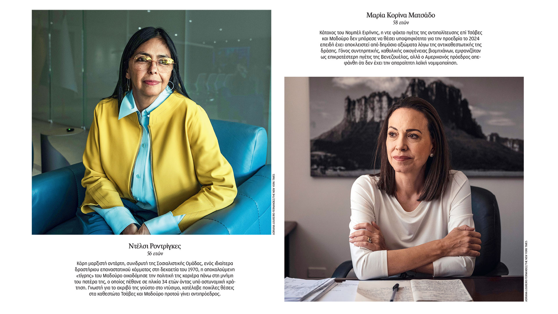 Δύο γυναίκες, σχεδόν συνομήλικες, αλλά με πολύ διαφορετικές ιδεολογικές αφετηρίες, η διάδοχος του Νικολάς Μαδούρο και μέχρι πρότινος αντιπρόεδρος της Βενεζουέλας Ντέλσι Ροντρίγκες, κόρη μαρξιστή αγωνιστή, και η ηγέτις της αντιπολίτευσης Μαρία Κορίνα Ματσάδο, γόνος συντηρητικής καθολικής οικογένειας βιομηχάνων, είναι τα πρόσωπα που αναμένεται να καθορίσουν το μέλλον της χώρας.