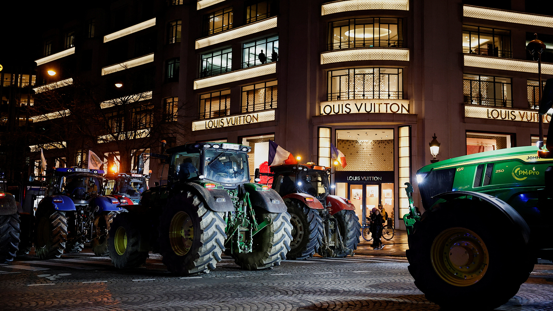 Ενα άλλο συνδικάτο των αγροτών, ο Αγροτικός Συντονισμός, είχε ήδη φέρει τα τρακτέρ κάτω από τον Πύργο του Αϊφελ και την Αψίδα του Θριάμβου την περασμένη Πέμπτη, σε μια αιφνιδιαστική διαδήλωση.