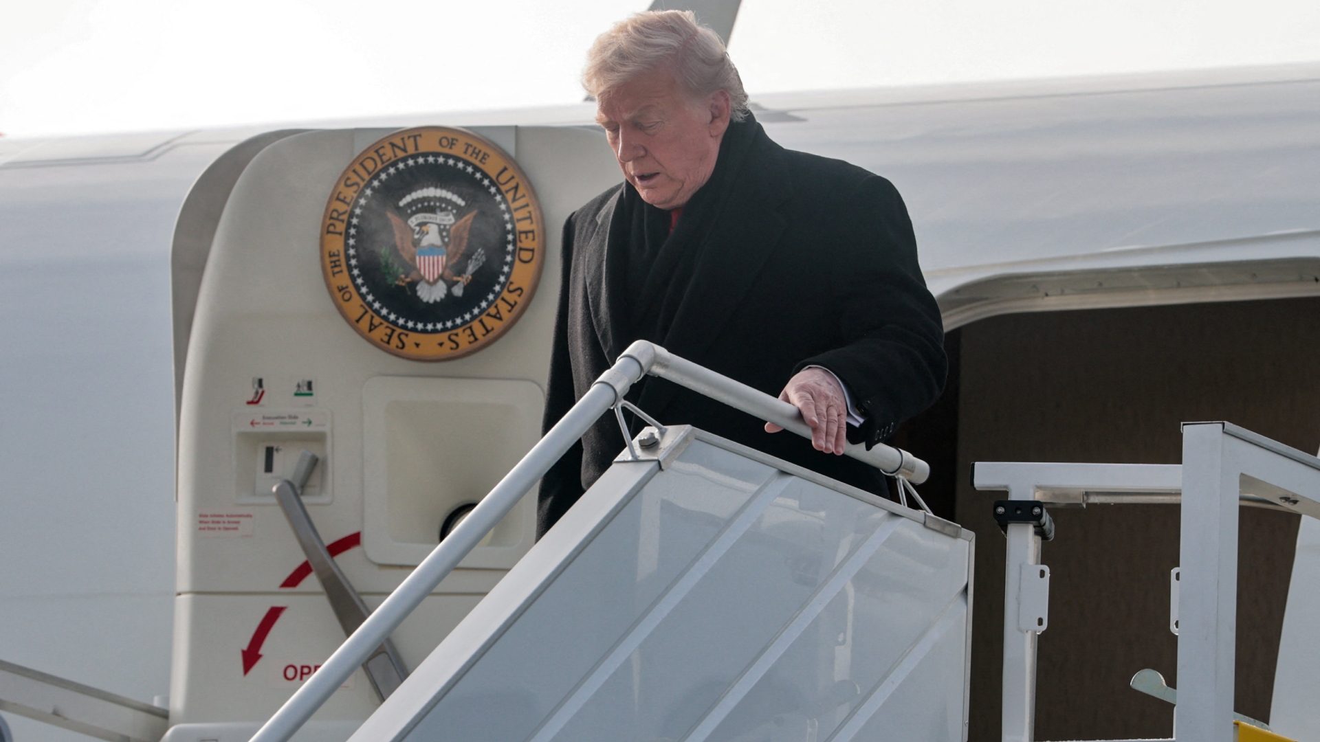 Ο πρόεδρος των ΗΠΑ προσγειώθηκε στη Ζυρίχη και από εκεί επιβιβάστηκε στο ελικόπτερο που τον μετέφερε στο Νταβός, όπου θα εκφωνήσει ομιλία στο Παγκόσμιο Οικονομικό Φόρουμ.