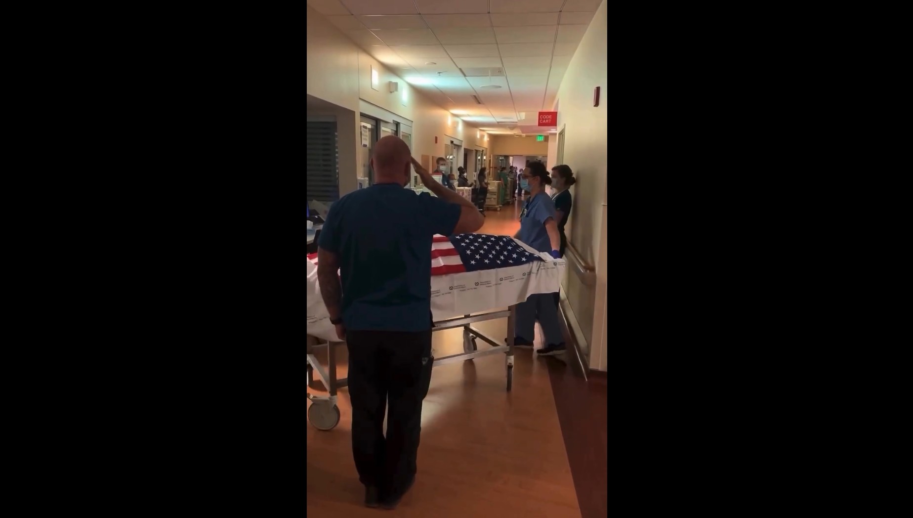 Στο βίντεο και στις αναρτήσεις που κυκλοφόρησαν στα μέσα κοινωνικής δικτύωσης, συνάδελφοι του Πρέτι στέκονται σε παράταξη αποδίδοντας τιμές στον 37χρονο νοσηλευτή, ο οποίος εργαζόταν καθημερινά στο νοσοκομείο προσφέροντας φροντίδα σε Αμερικανούς βετεράνους.