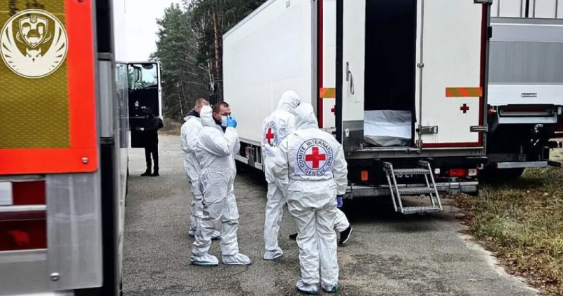 Το ουκρανικό κέντρο συντονισμού αιχμαλώτων πολέμου κοινοποίησε εικόνες στο Telegram όπου φαίνεται προσωπικό με προστατευτικό εξοπλισμό, το οποίο υποστηρίζει τη διαδικασία.