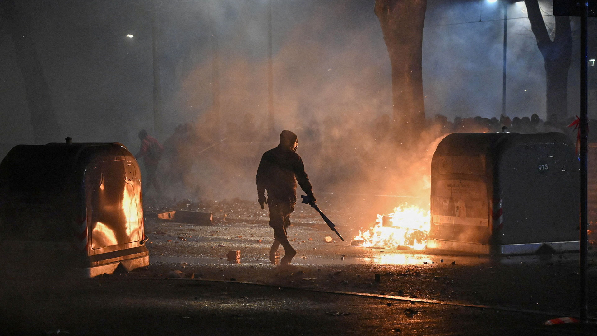Με τη σειρά τους, αστυνομικοί απάντησαν με καπνογόνα και αντλίες νερού. Μέχρι στιγμής, ο απολογισμός είναι έξι τραυματίες, η κατάσταση των οποίων δεν εμπνέει ανησυχία.