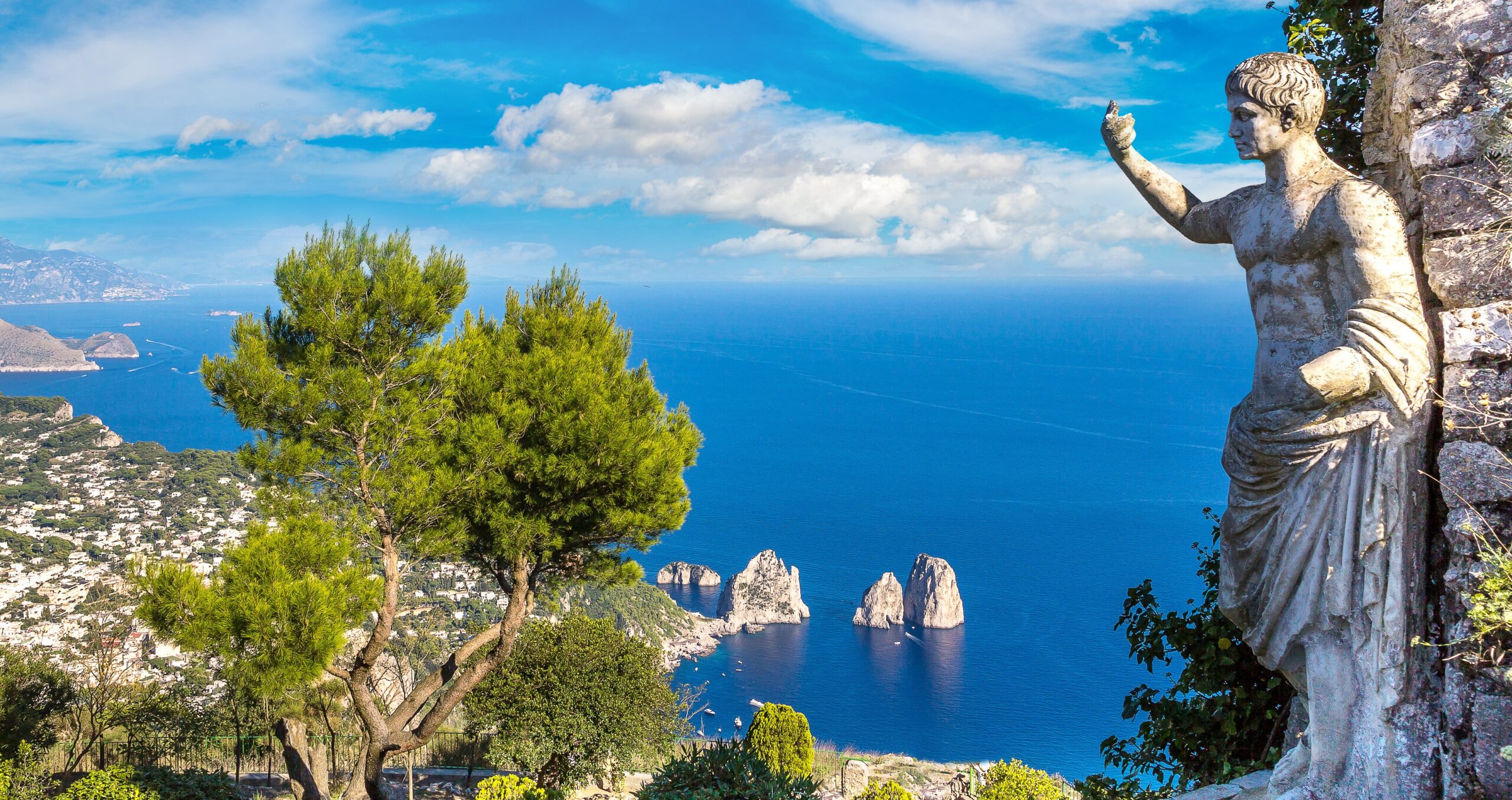 Το Κάπρι, στον κόλπο της Νάπολης, φημίζεται για τις λευκές επαύλεις του, την ακτογραμμή του και τους κολπίσκους του και τα πολυτελή ξενοδοχεία του.