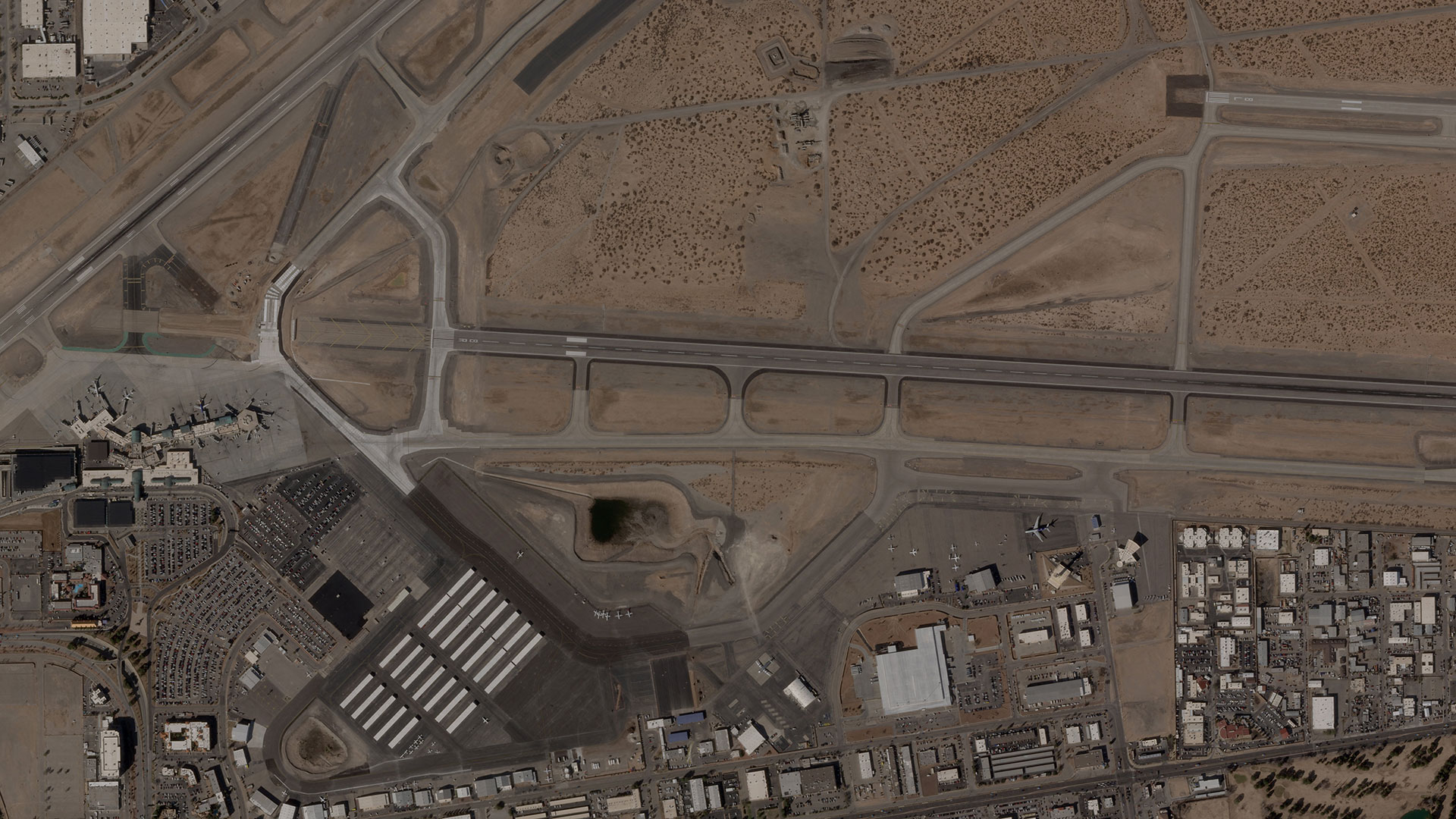 Το αεροδρόμιο βρίσκεται δίπλα στο αμερικανικό στρατιωτικό αεροδρόμιο Biggs Army Airfield καθώς και κοντά στα σύνορα με τη μεξικανική πόλη Χουάρες.