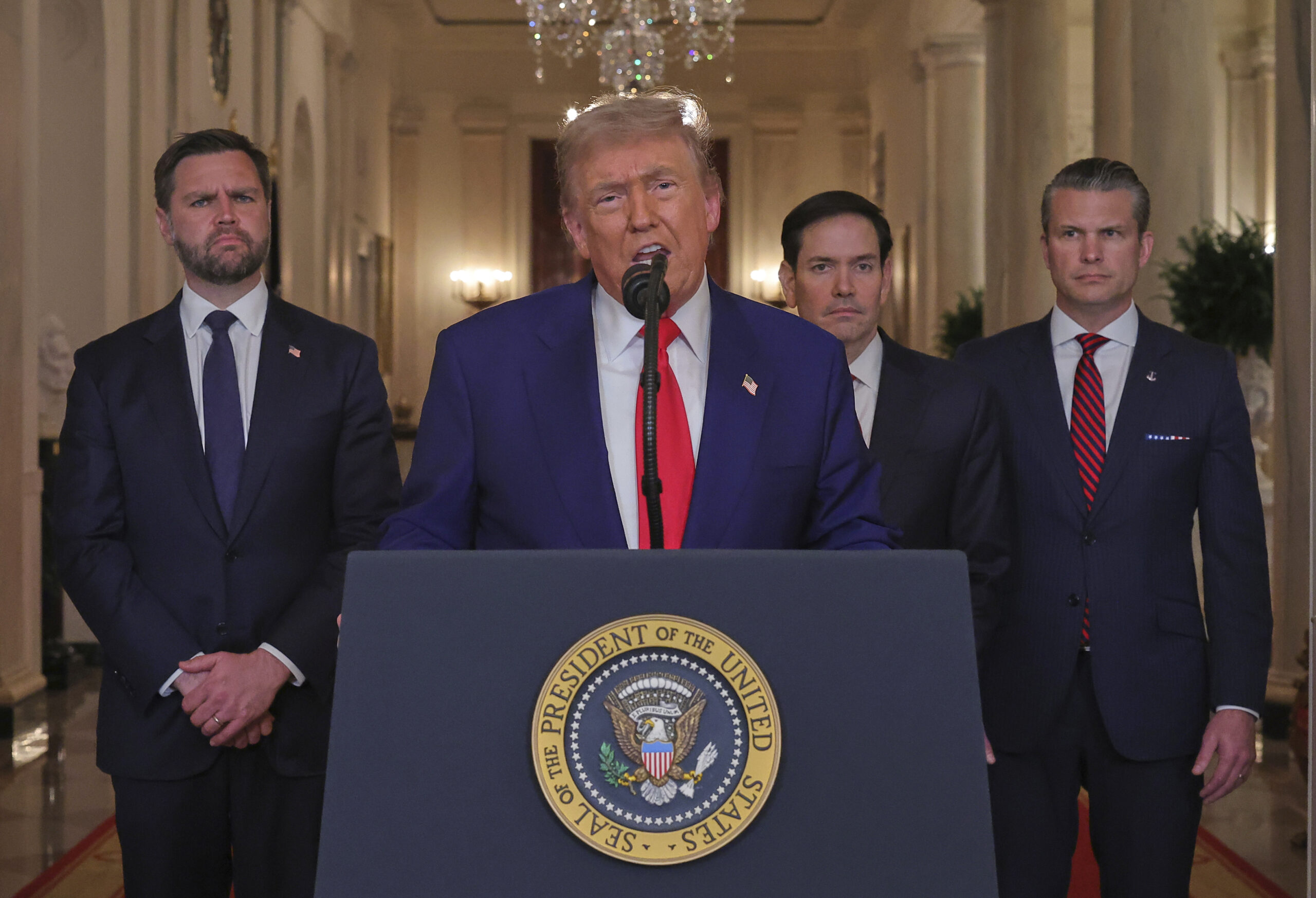 Μέρος αυτής της δύναμης πυρός βρίσκεται ακόμη καθ’ οδόν. Περισσότερες από 150 πτήσεις μεταφοράς στρατιωτικού φορτίου έχουν μεταφέρει αμερικανικά οπλικά συστήματα και πυρομαχικά στη Μέση Ανατολή. Μόνο τις τελευταίες 24 ώρες άλλα 50 μαχητικά αεροσκάφη -F-35, F-22 και F-16- κατευθύνθηκαν προς την περιοχή.