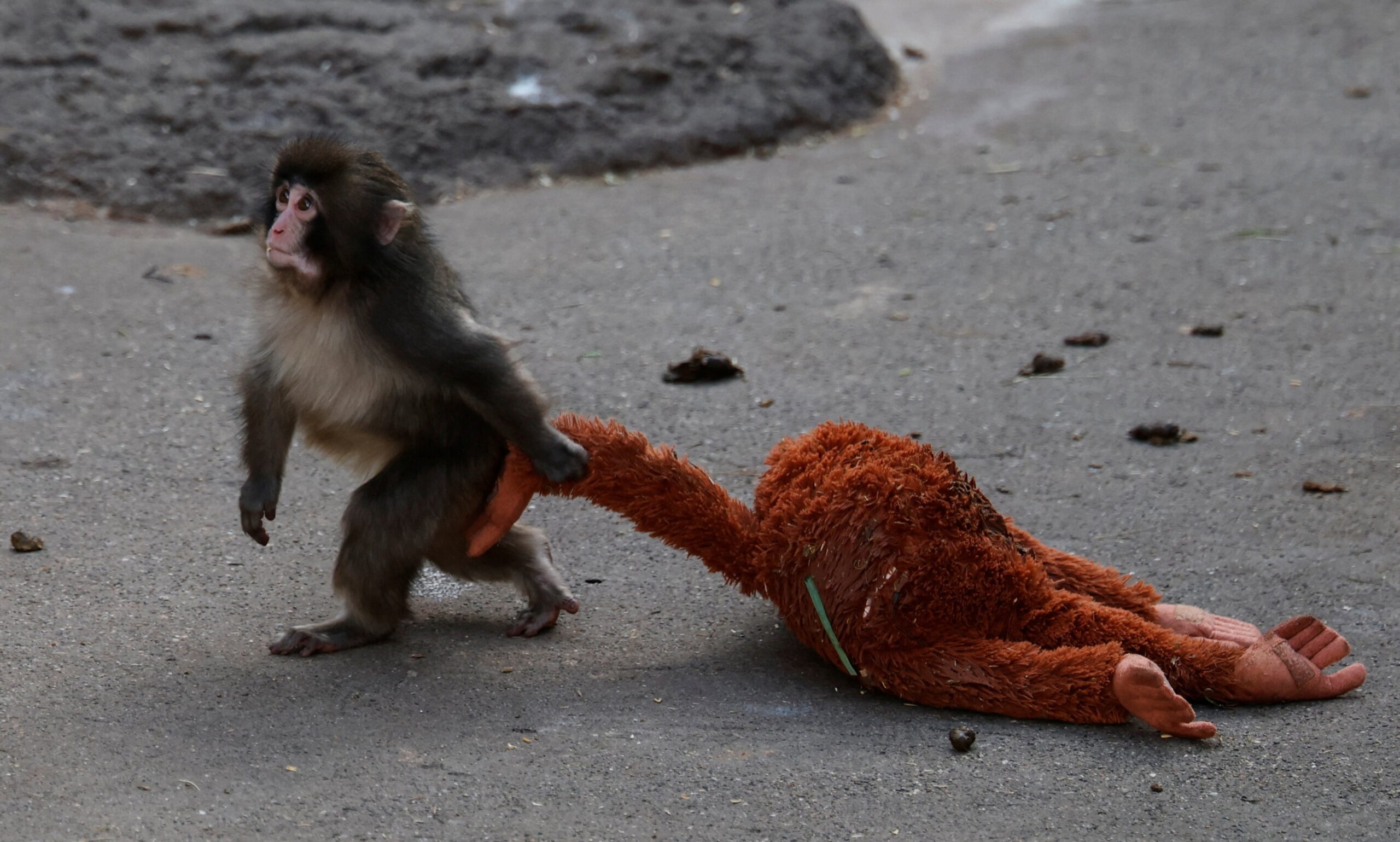 Βίντεο τον έδειχναν να προσπαθεί να πλησιάσει τα ενήλικα πρωτεύοντα, αλλά να απωθείται από αυτά, καταλήγοντας να παίζει συχνά μόνος του.