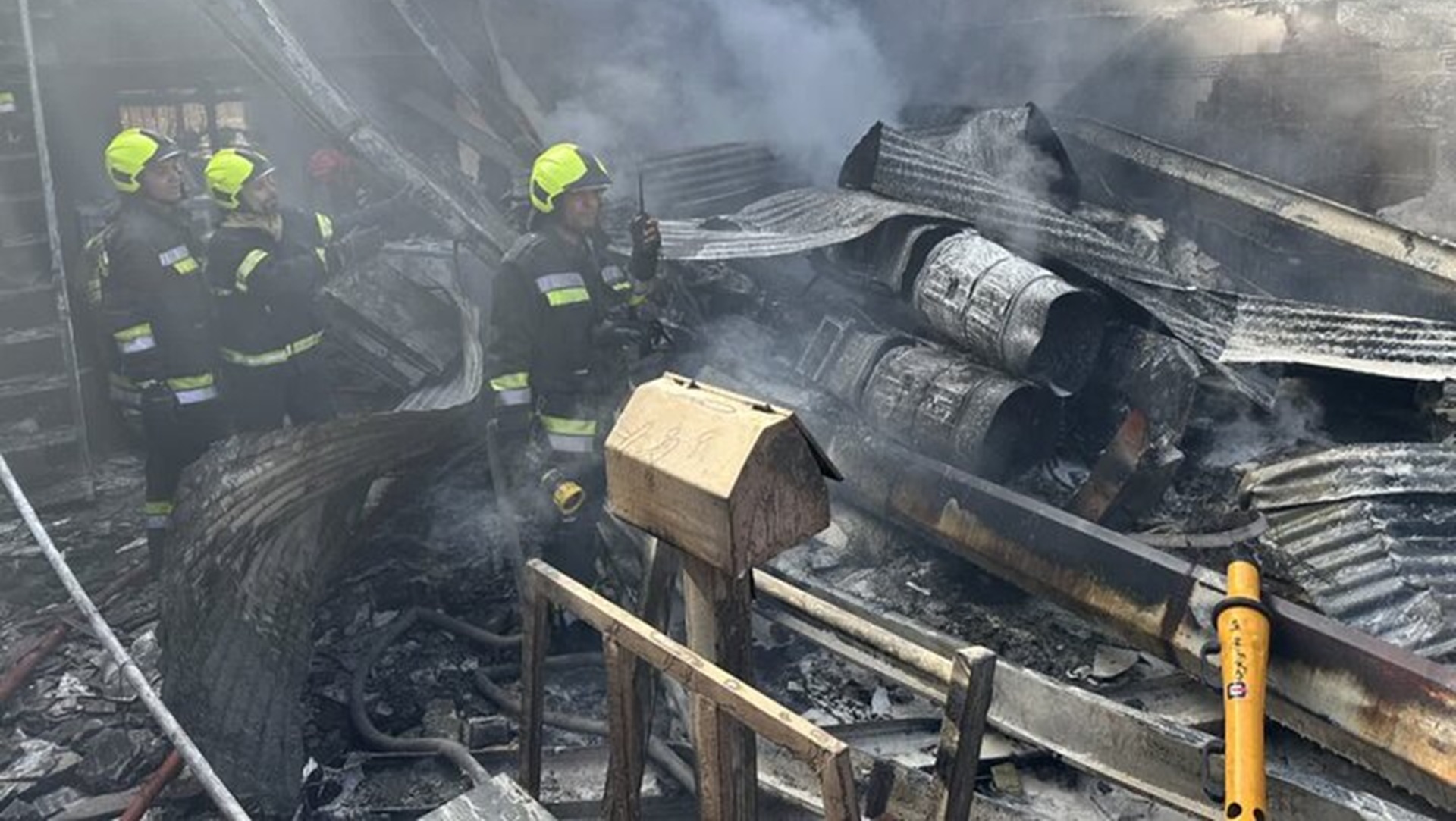 Iranian Army training helicopter crashed in Dorcheh, Khomeini Shahr (Isfahan Province), inside a wholesale fruit and vegetable market compound.