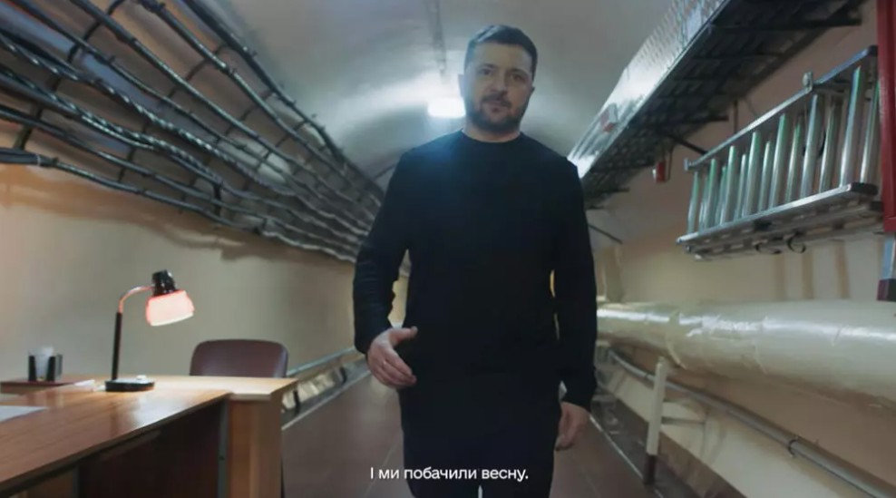 Στο βίντεο, εμφανίζεται να περπατά στο υπόγειο συγκρότημα που χρησιμοποίησε για να προστατευθούν ο ίδιος και η ουκρανική ηγεσία τις πρώτες ημέρες μετά την εισβολή. «Δεν είχαμε δείξει ποτέ ξανά αυτή την εγκατάσταση», τονίζει.