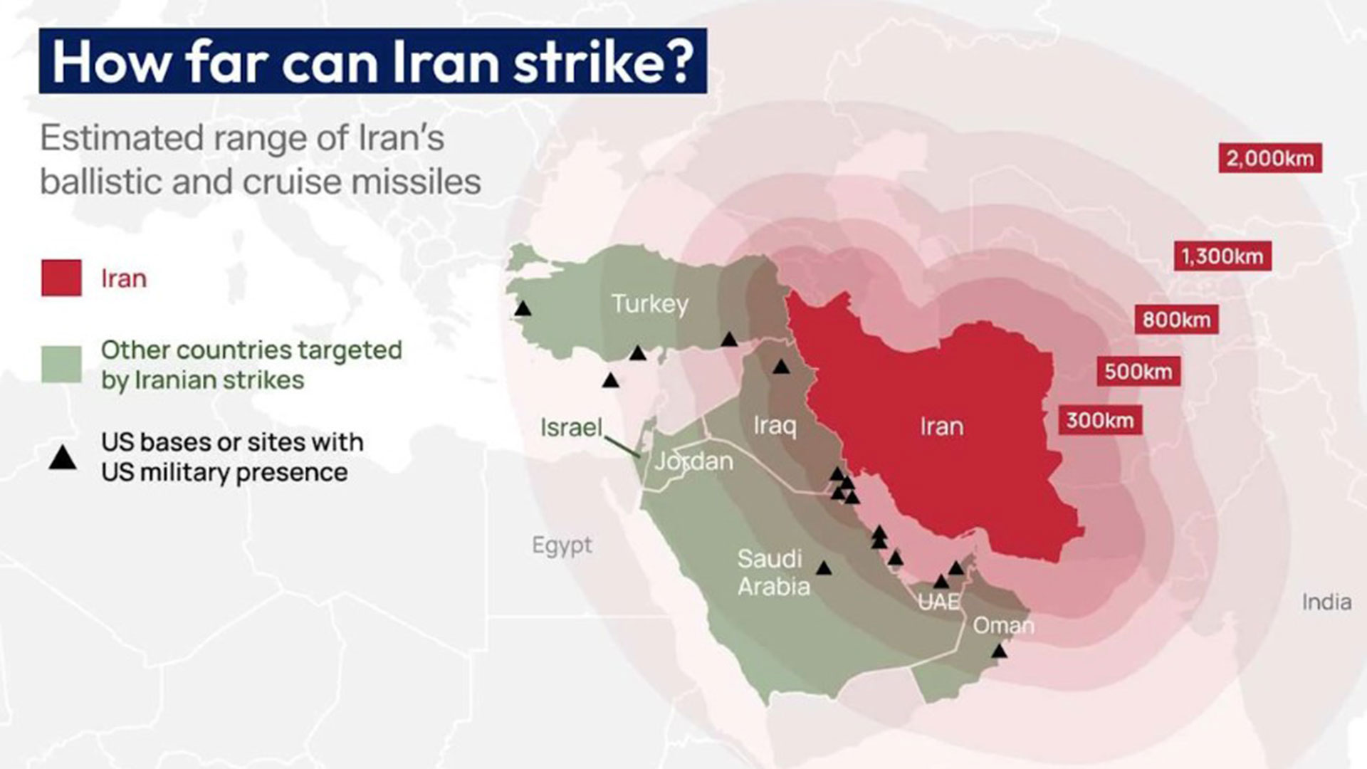 Σε αυτό το πλαίσιο, ο χάρτης των χωρών που βρίσκονται δυνάμει στο στόχαστρο ιρανικών επιθέσεων διευρύνεται, καθώς η σύγκρουση κινδυνεύει να εξελιχθεί σε έναν παρατεταμένο πόλεμο φθοράς.
